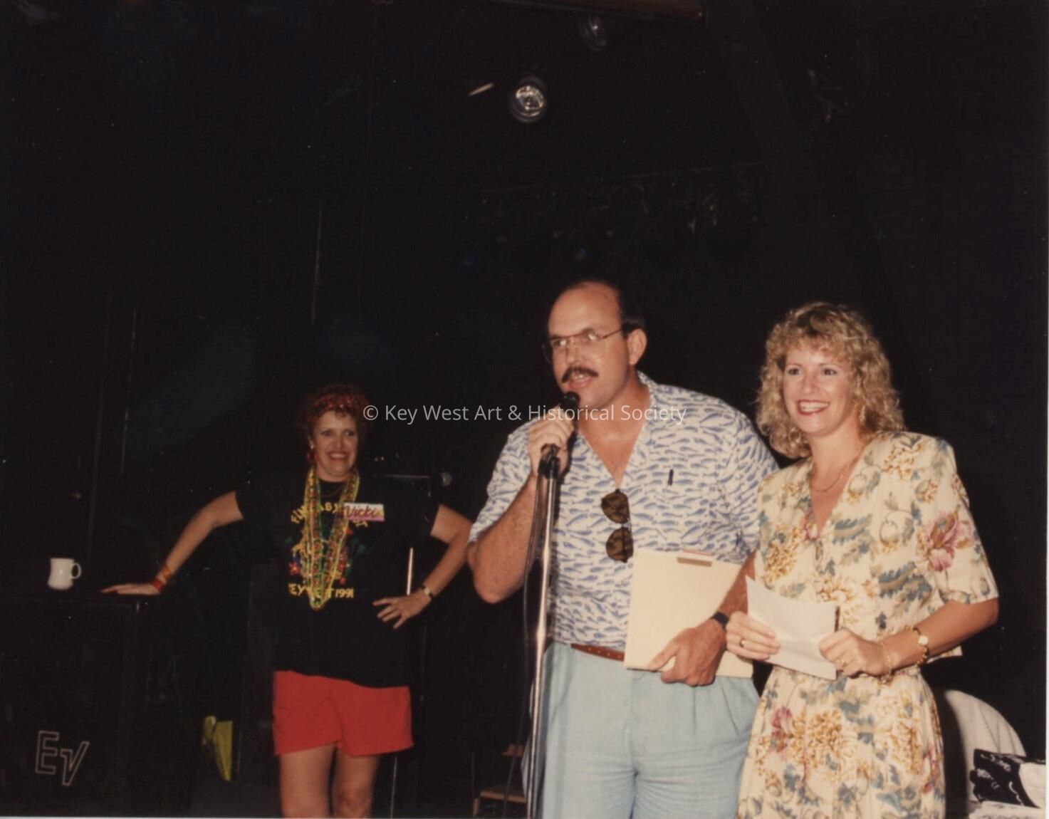 Unknown people on stage, one is talking into a microphone.Collection