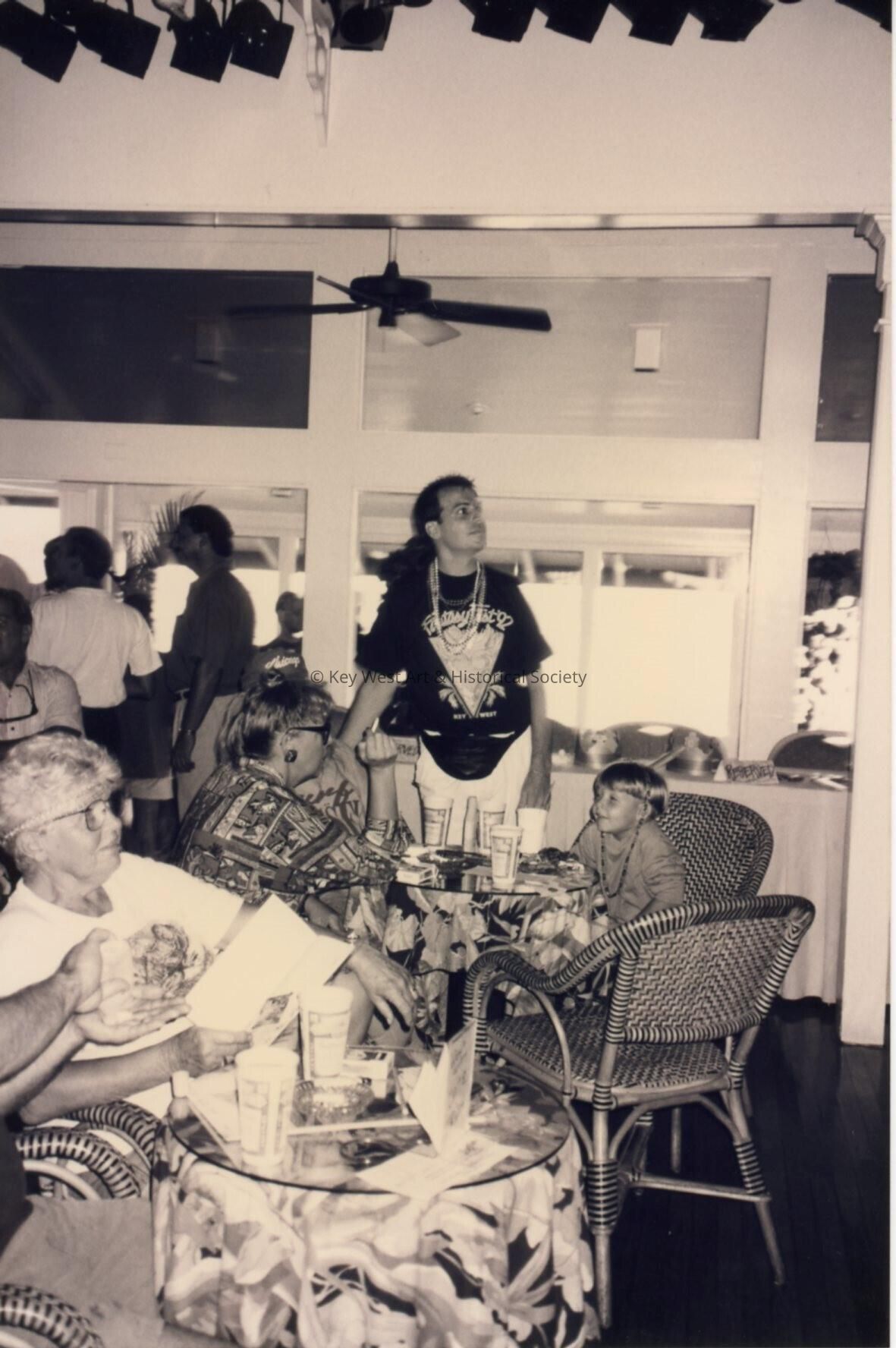 Unknown people sitting around at a few tables.Entry/Object ID