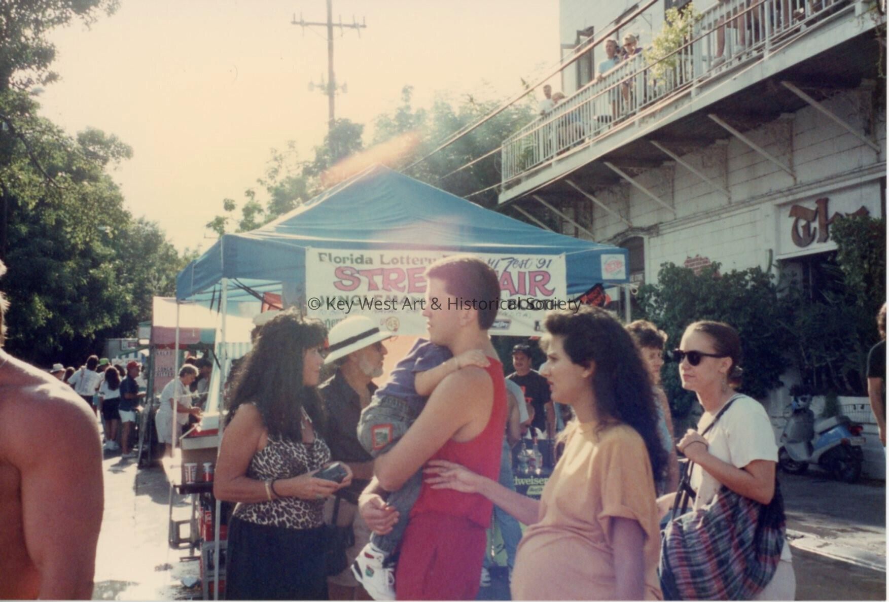 Unknown people standing around the Florida lottery booth at the street fair.Entry/Object ID