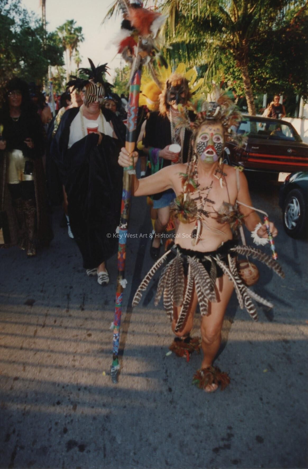 Unknown people walking in the Masquerade parade.Entry/Object ID