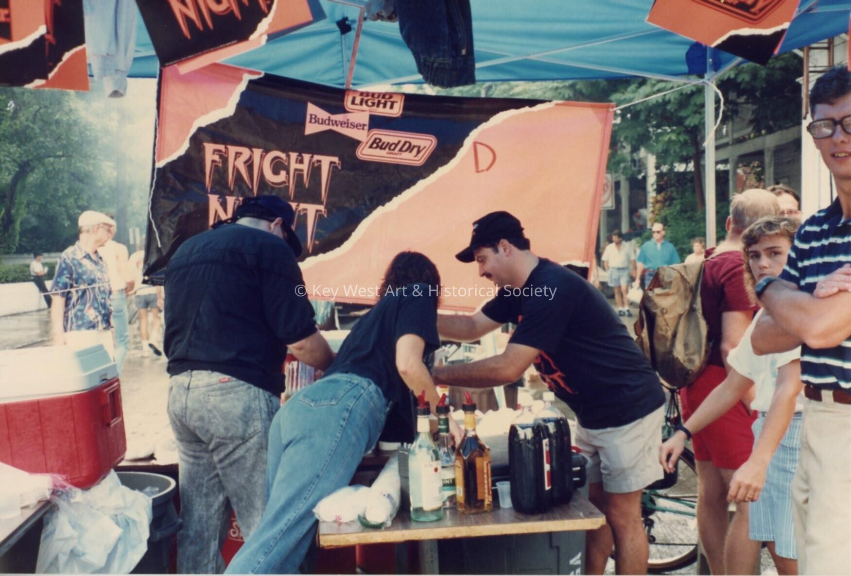 Unknown people working at the street fair booth.Entry/Object ID
