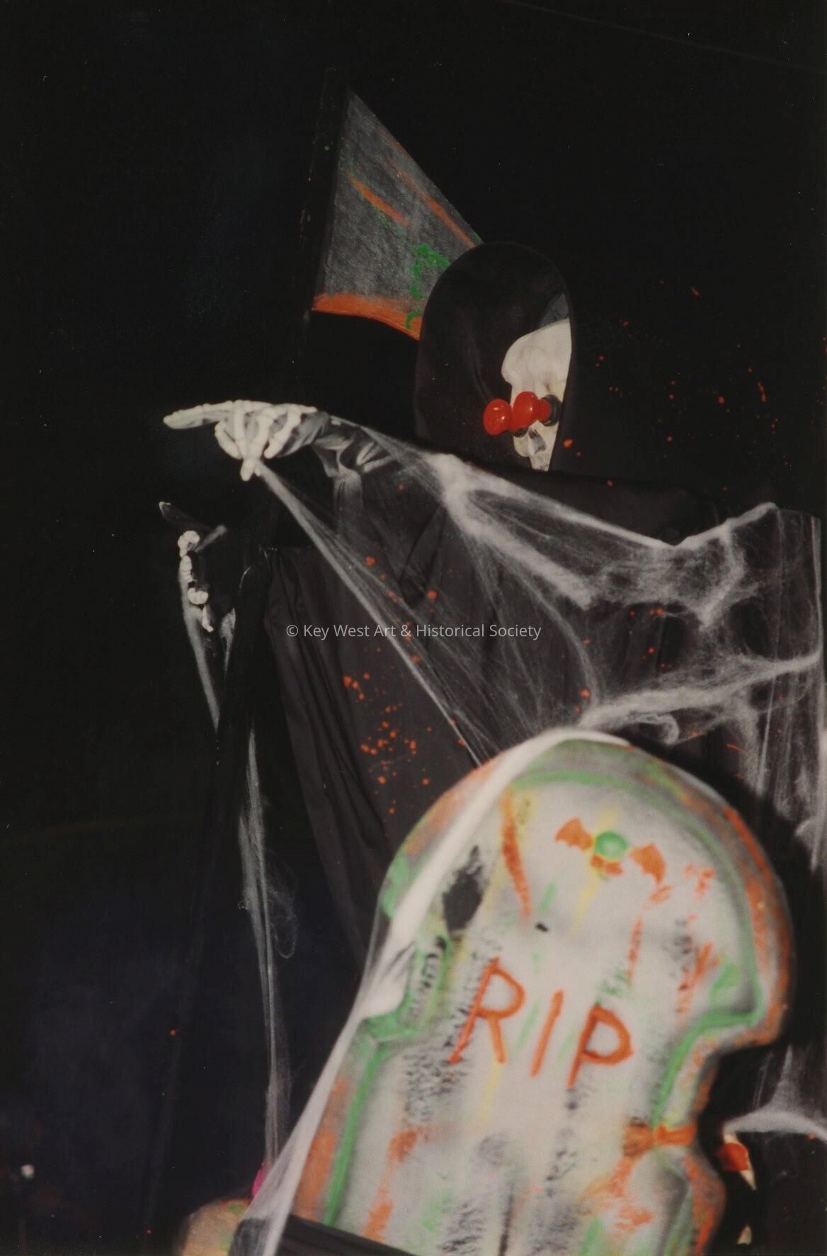 Unknown person dressed up on a float.