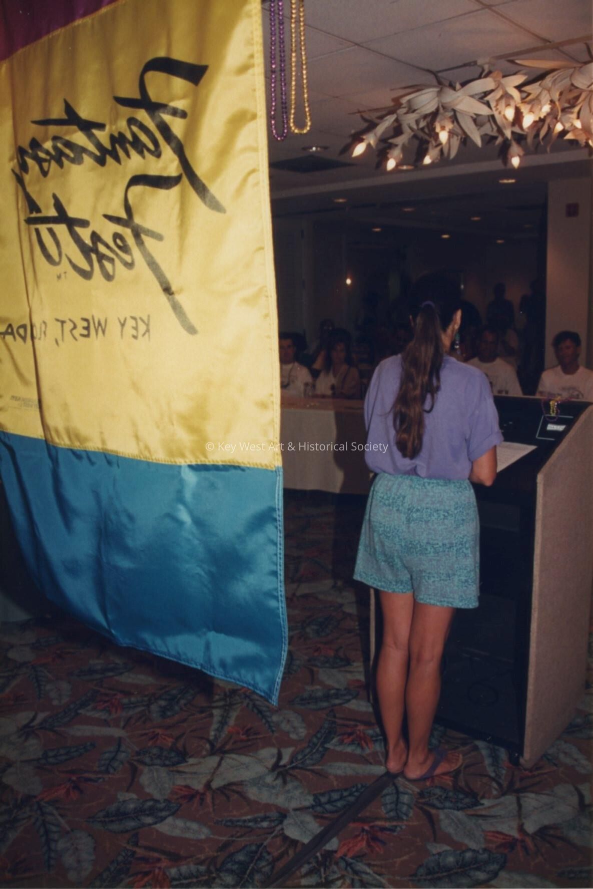 Unknown talking at the Fantasy Fest meeting.