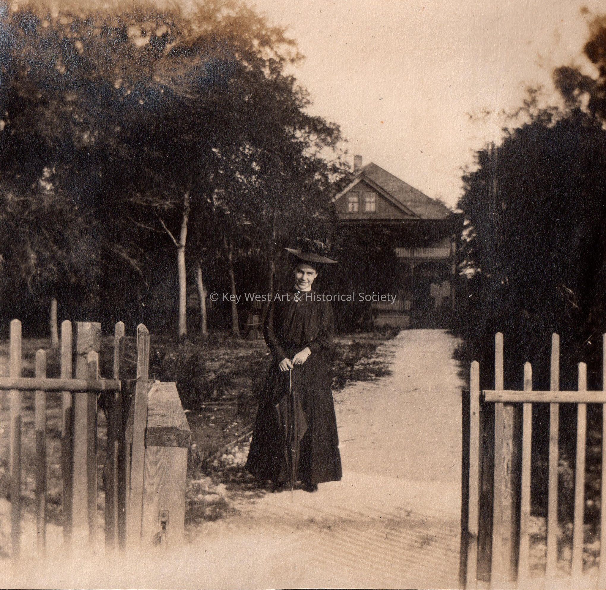 Unknown woman in front of a house.