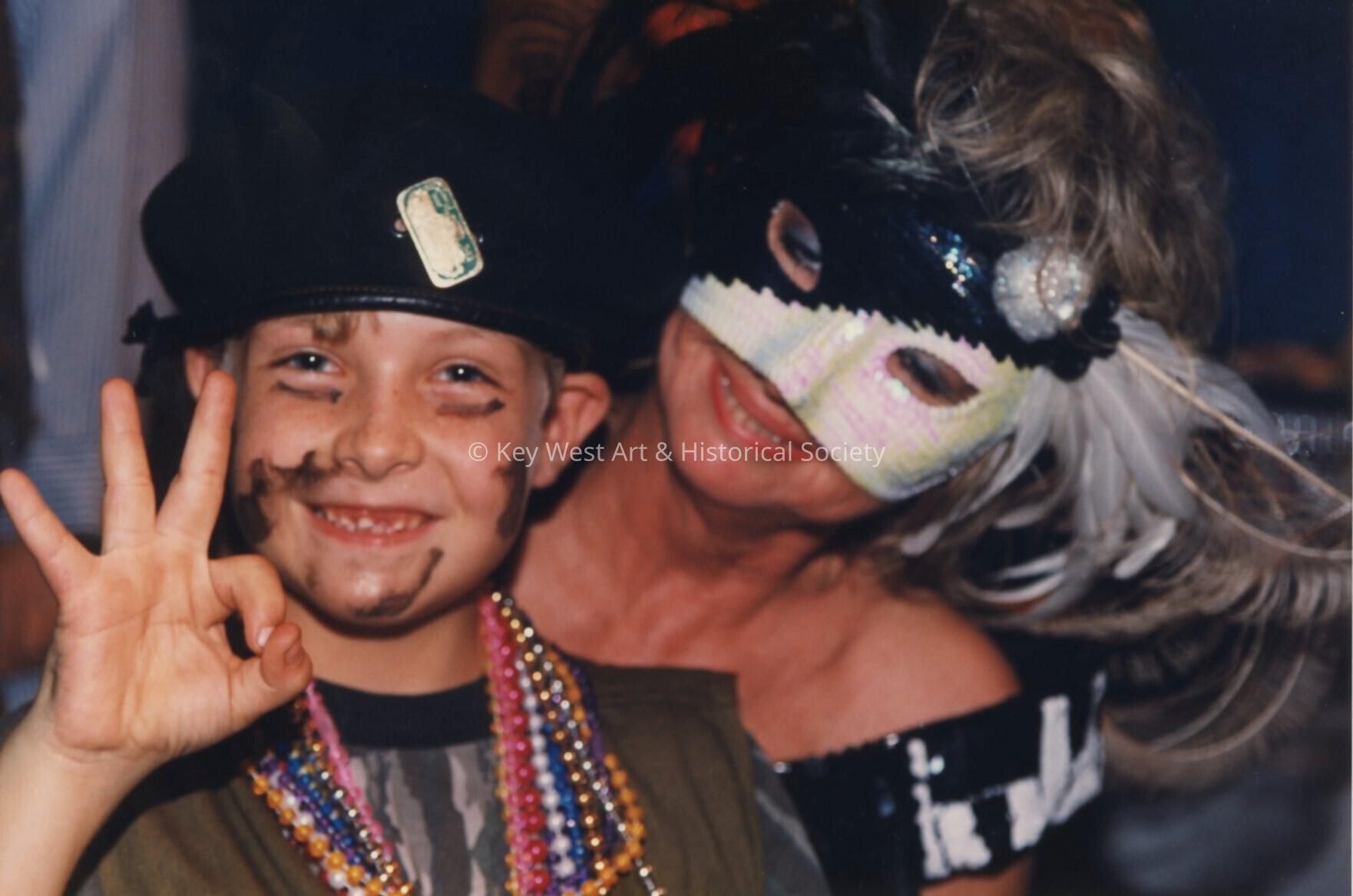 Unknown woman and a child dressed up.
