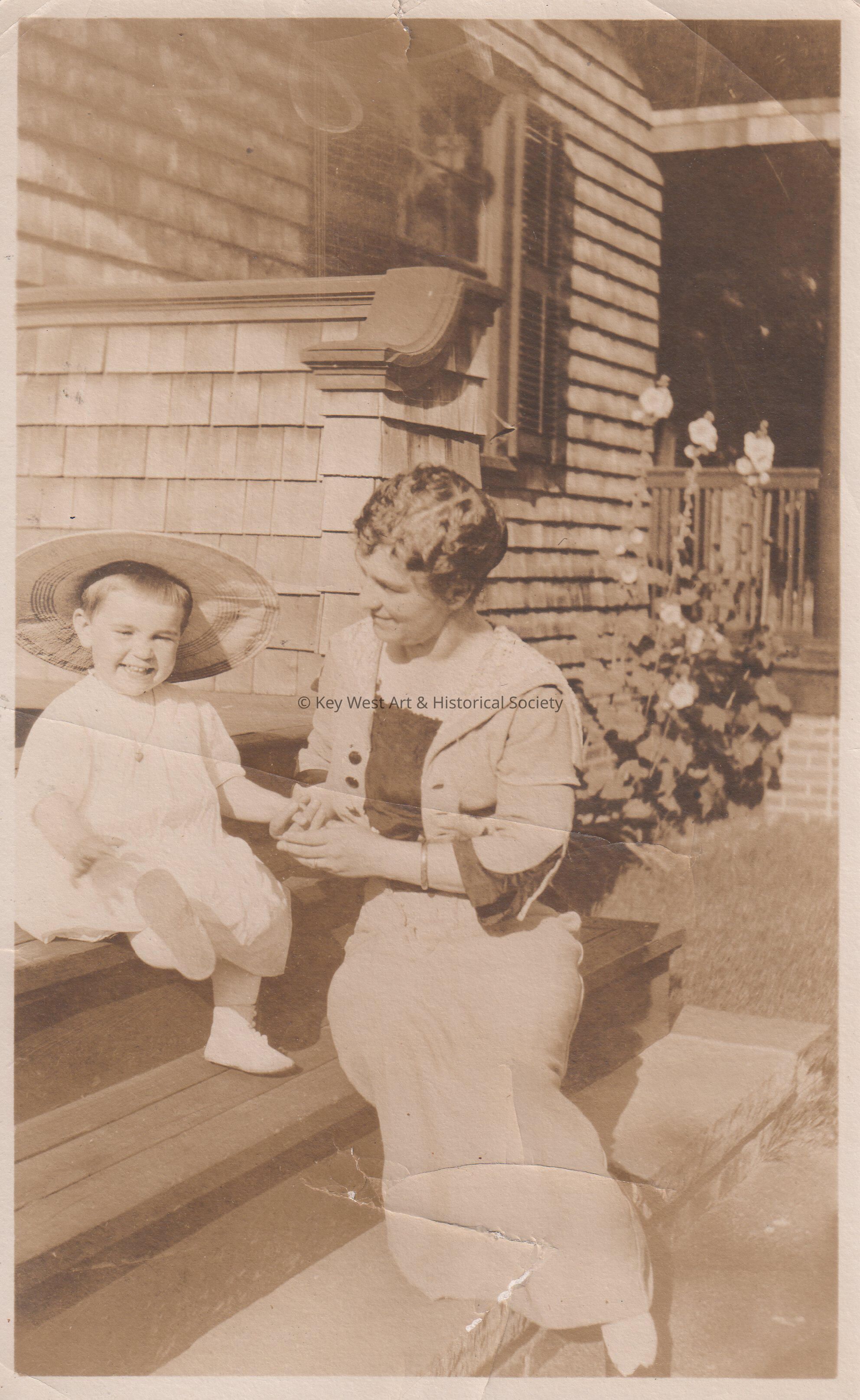 unknown woman and child on porch