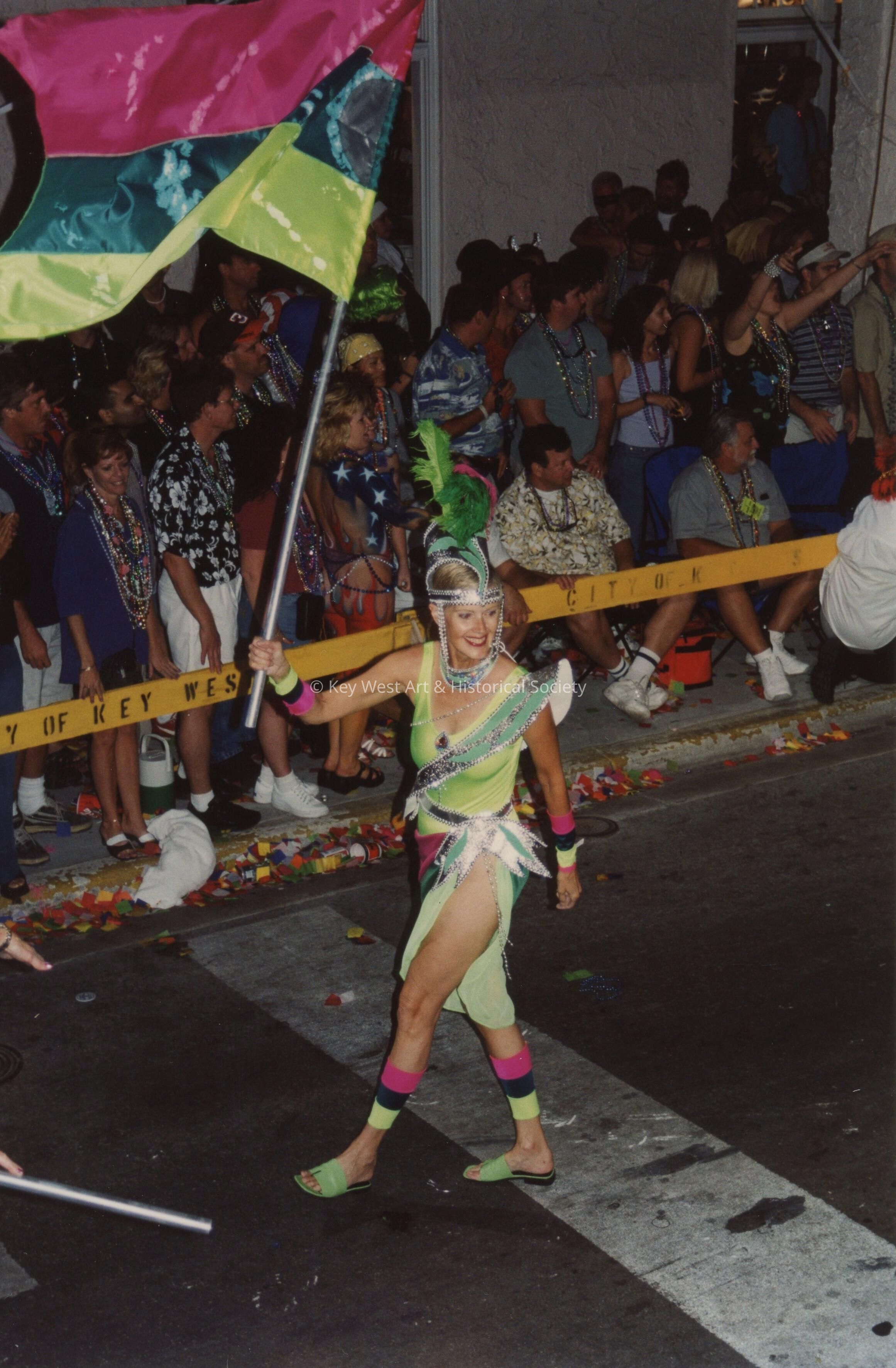 Unknown woman dressed up walking in the parade.Entry/Object ID
