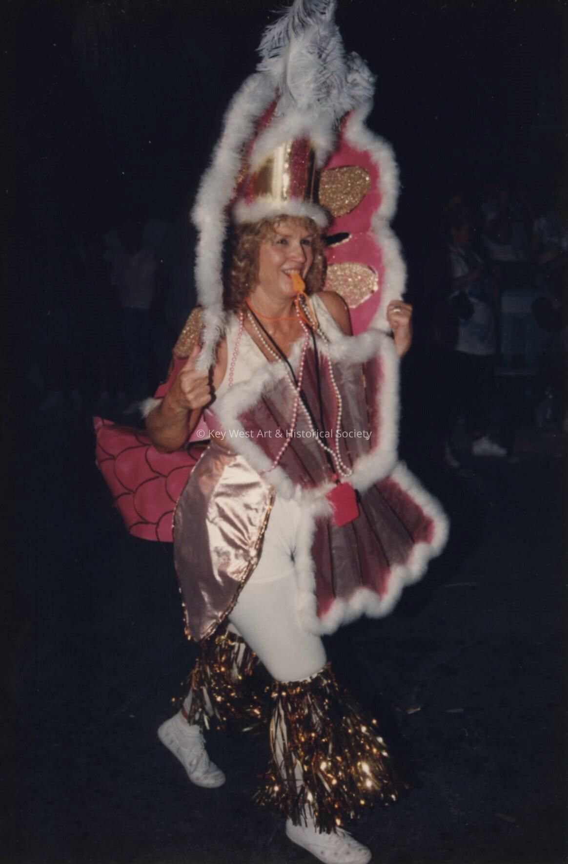 Unknown woman dressed up walking in the parade.Entry/Object ID