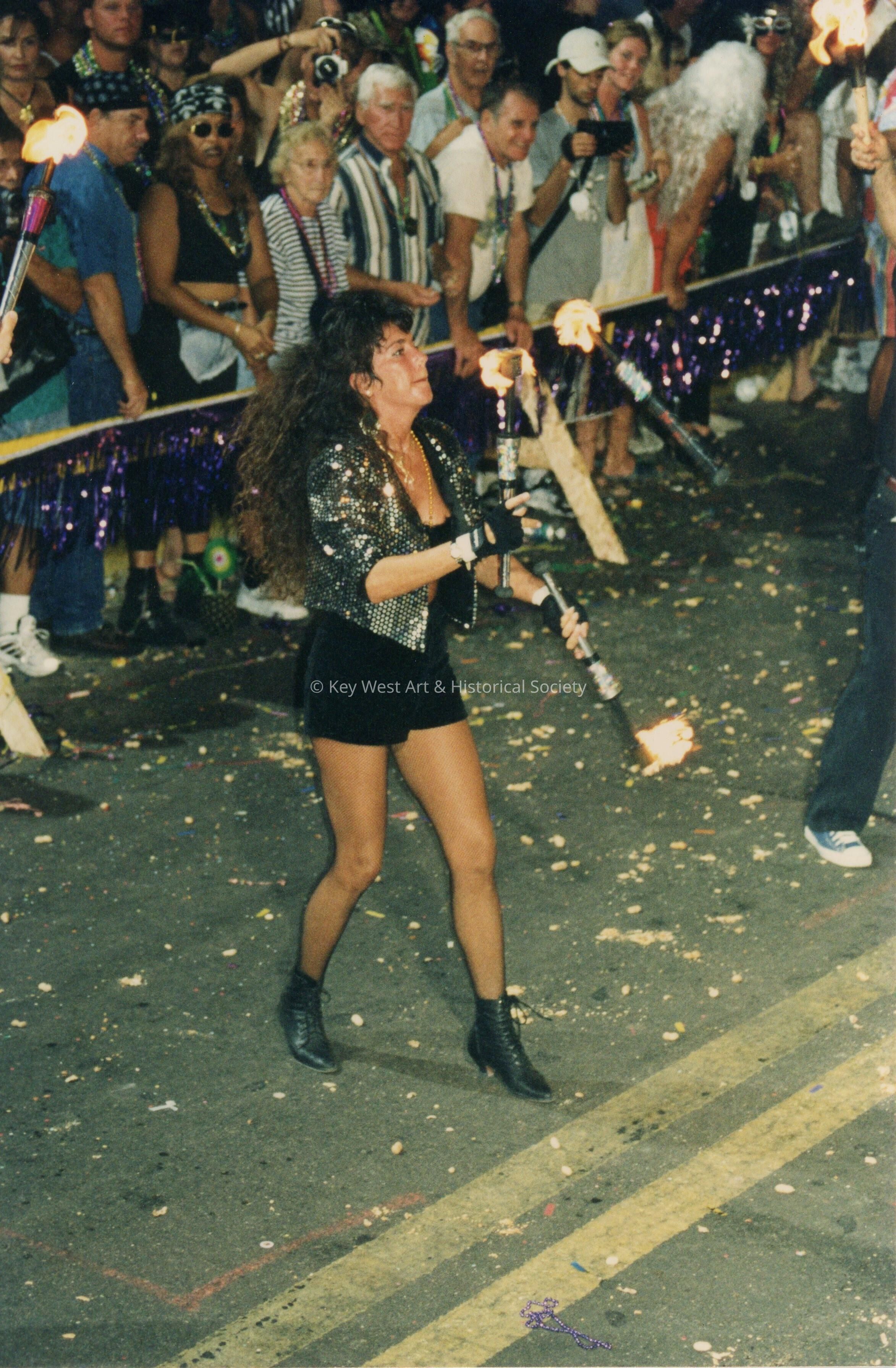 Unknown woman juggling in the street for the parade.Entry/Object ID