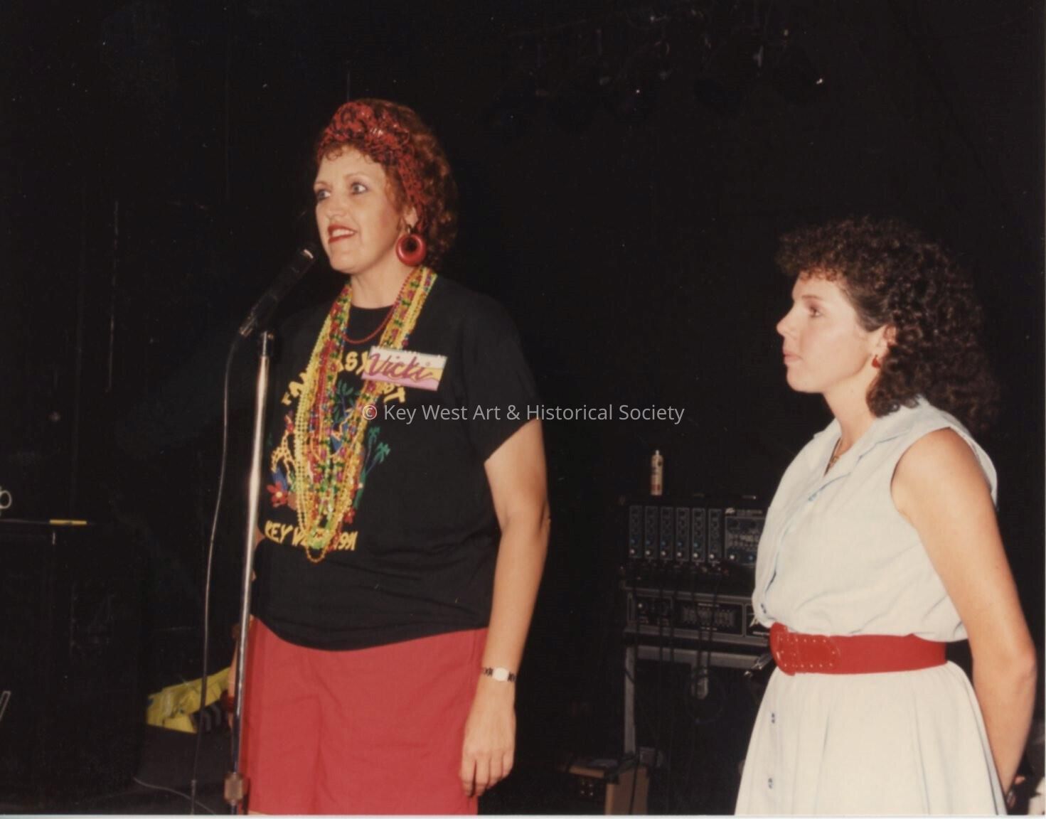 Vivki Roush and a contestant on stage.Collection