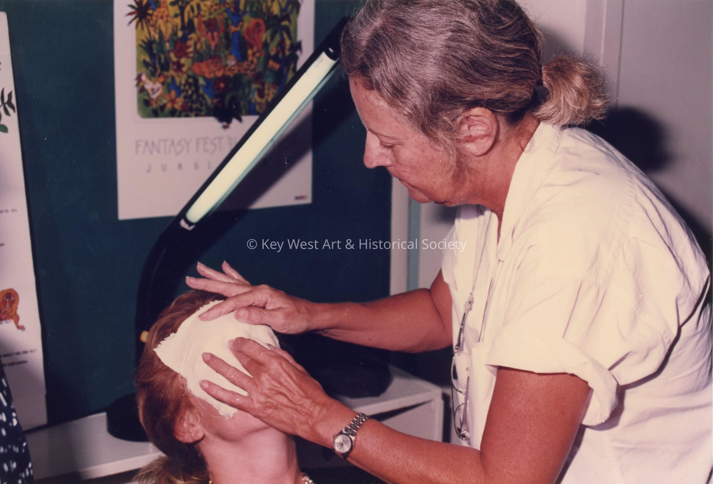 Unknown woman putting a face mask on an unknown woman.Entry/Object ID