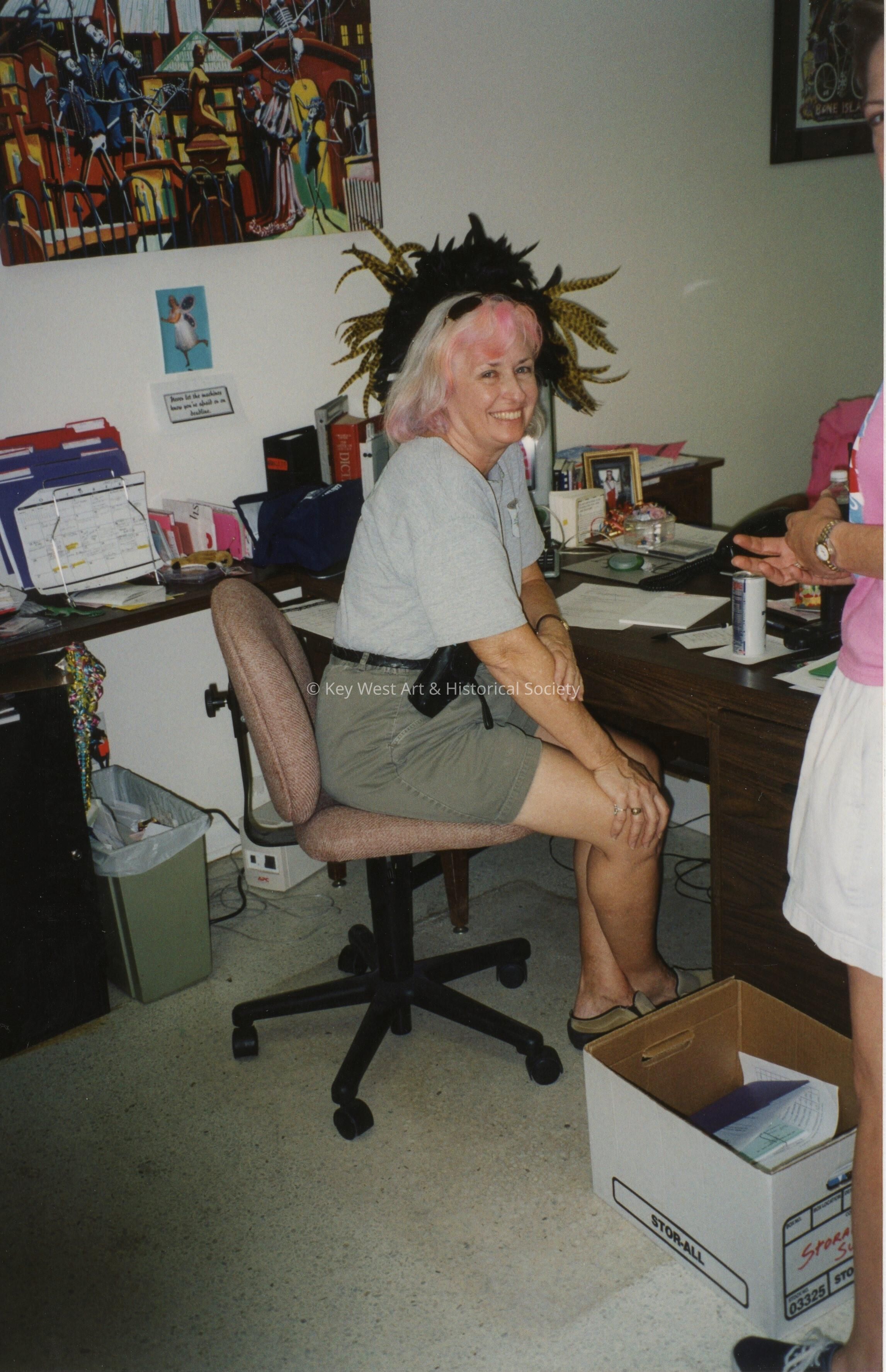 Unknown woman sitting at a desk.