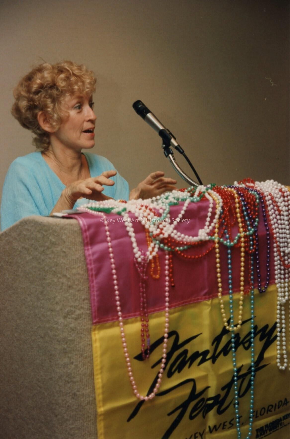 Unknown woman talking at the Coors light parade workshop.Collection