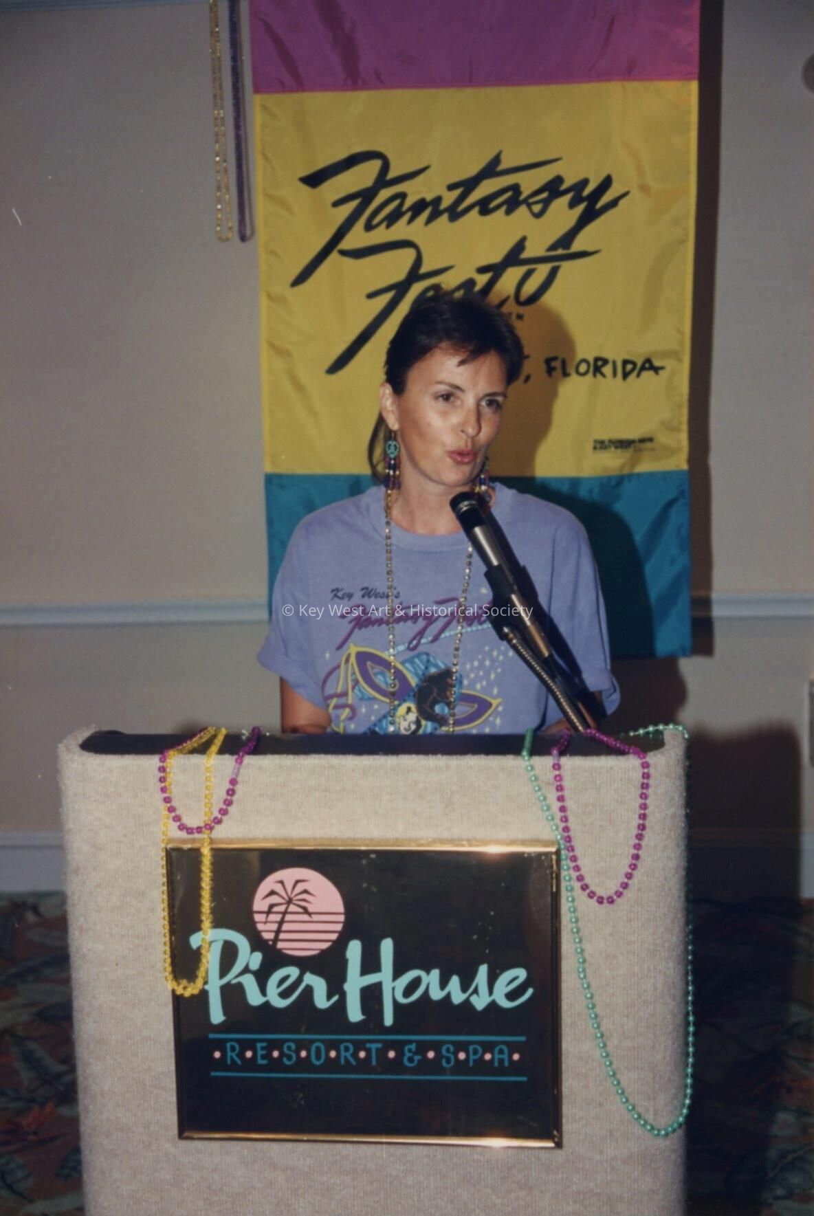 Unknown woman talking at the podium, at the Fantasy Fest meeting.Collection
