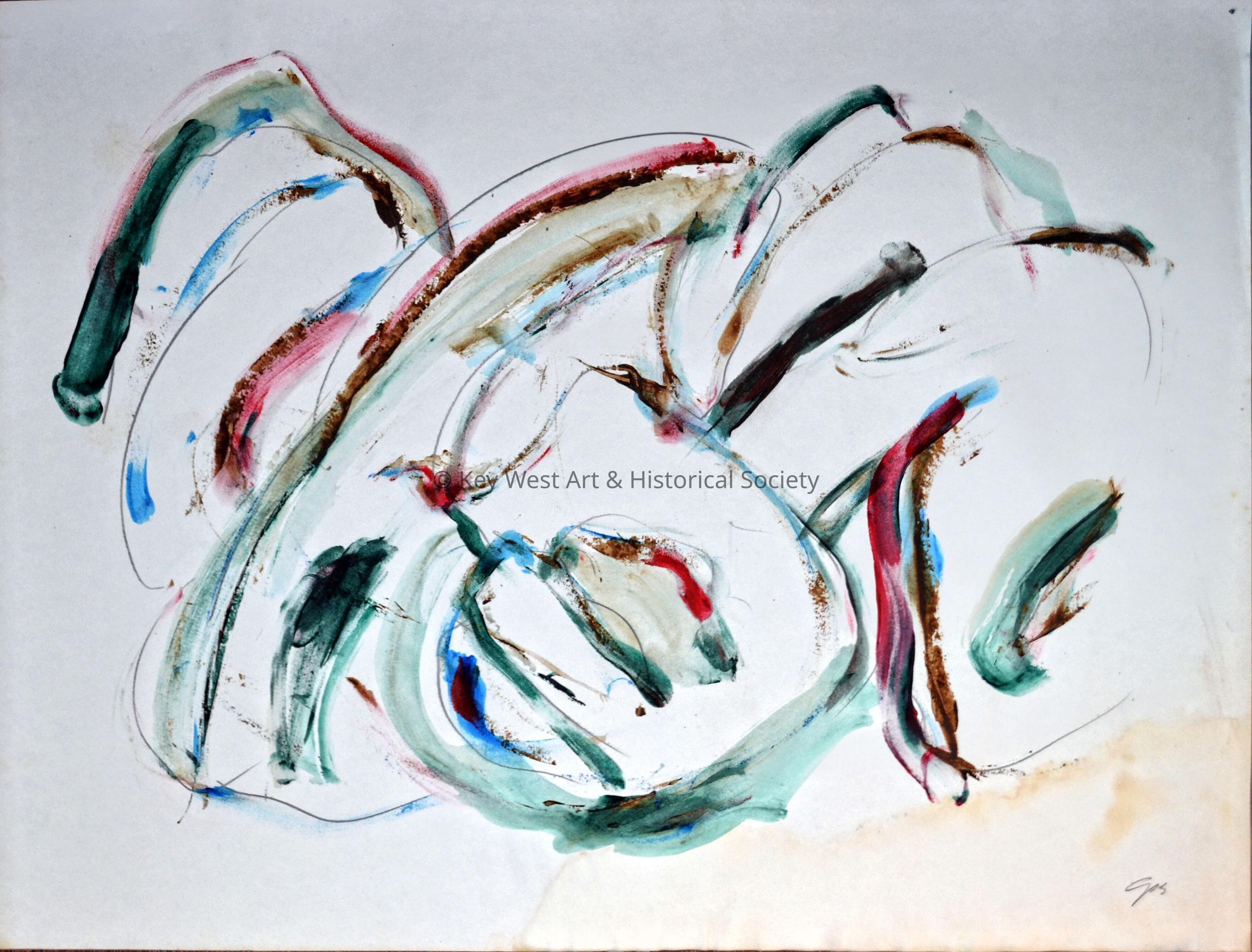 Watercolor and acrylic painting by Fred Gros depicting an abstract form.Artwork Details