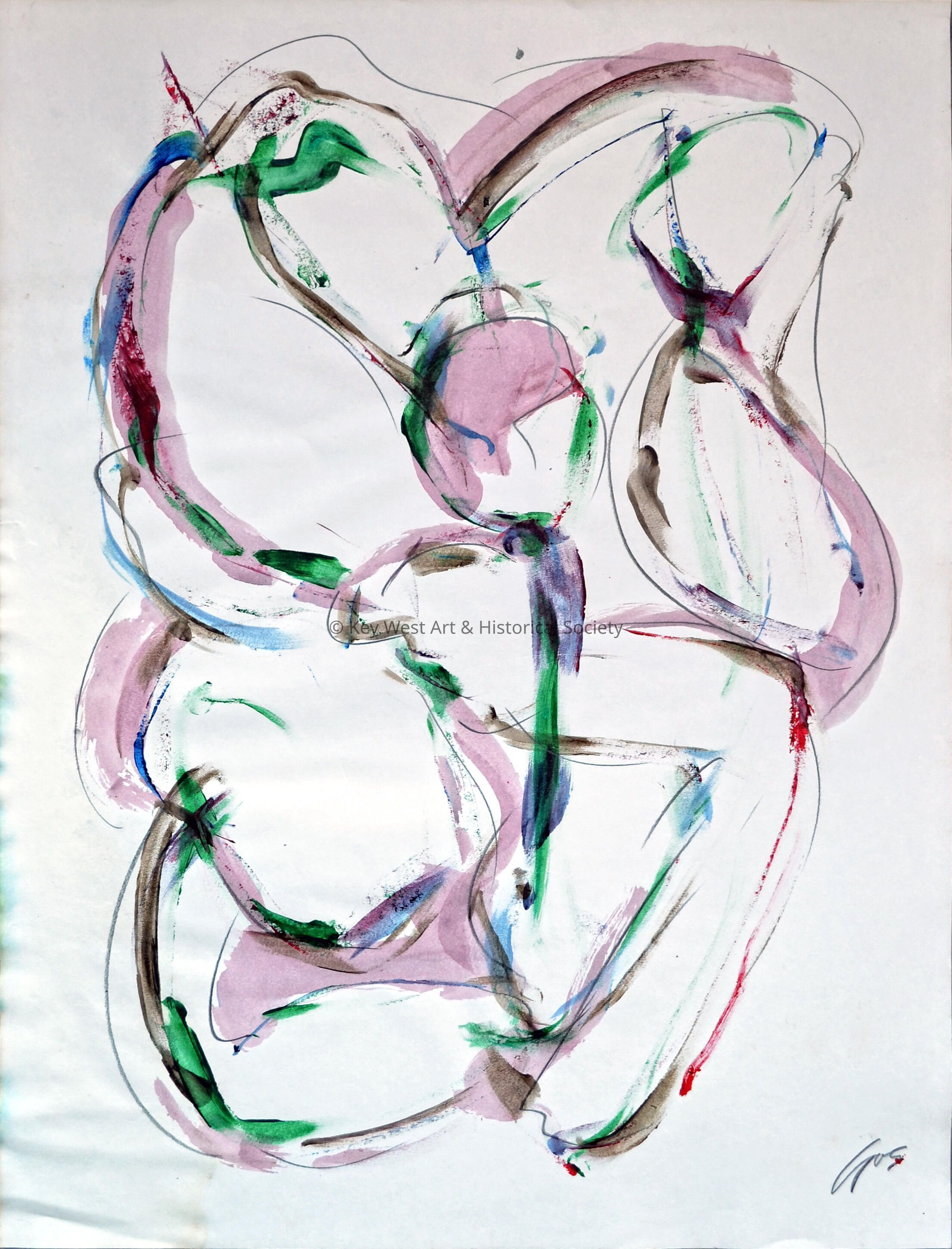 Watercolor and acrylic painting by Fred Gros depicting an abstract form.Artwork Details