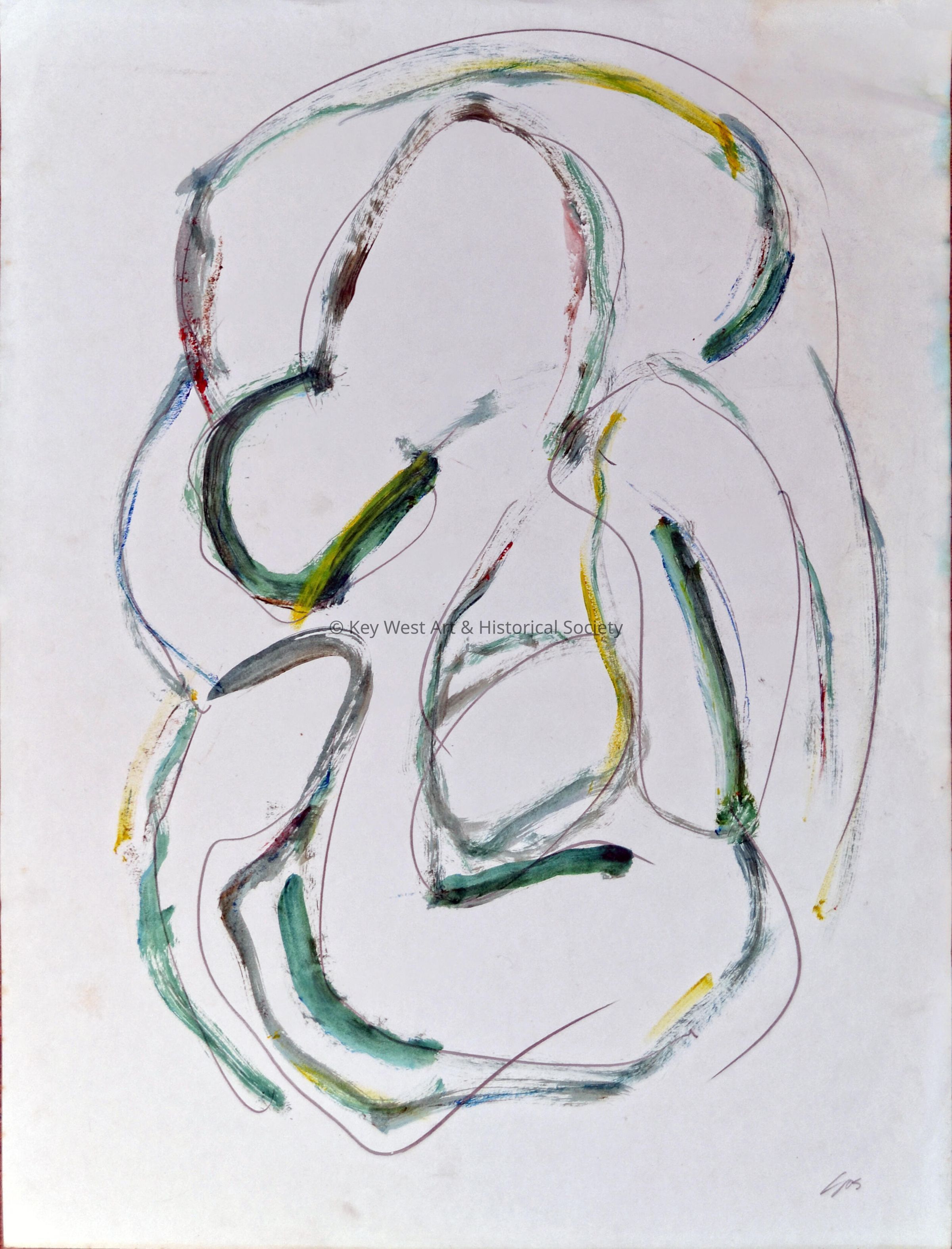 Watercolor and acrylic painting by Fred Gros depicting an abstract form.Artwork Details
