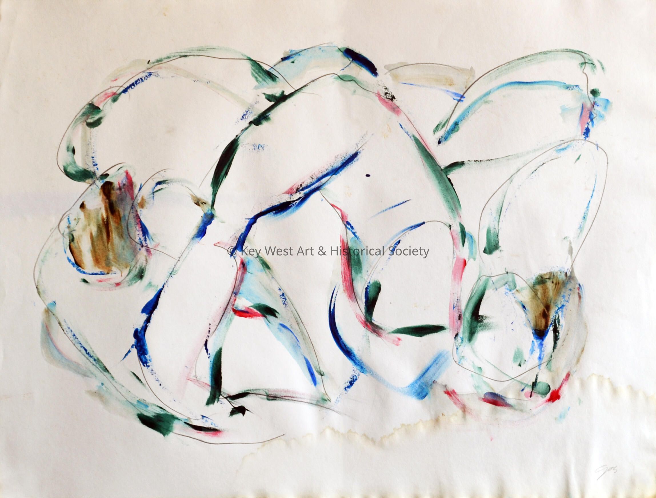 Watercolor and acrylic painting by Fred Gros depicting an abstract form.Artwork Details