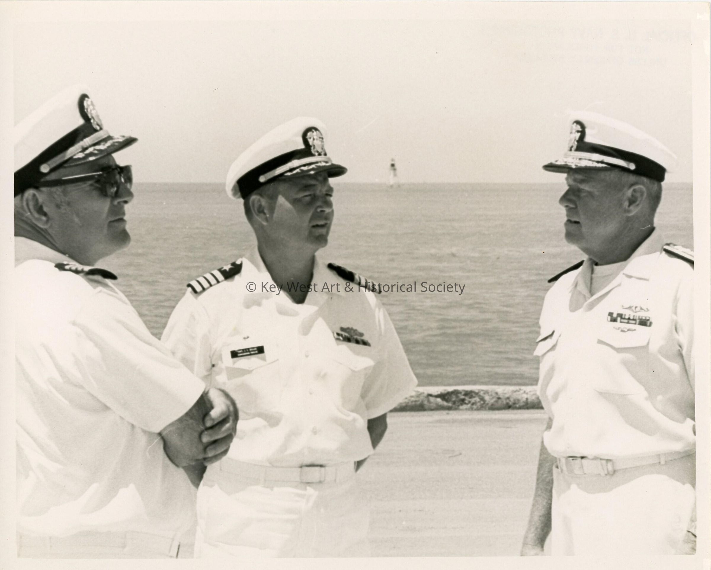 Black and white photograph of US Navy personnel at Naval Station Key West.