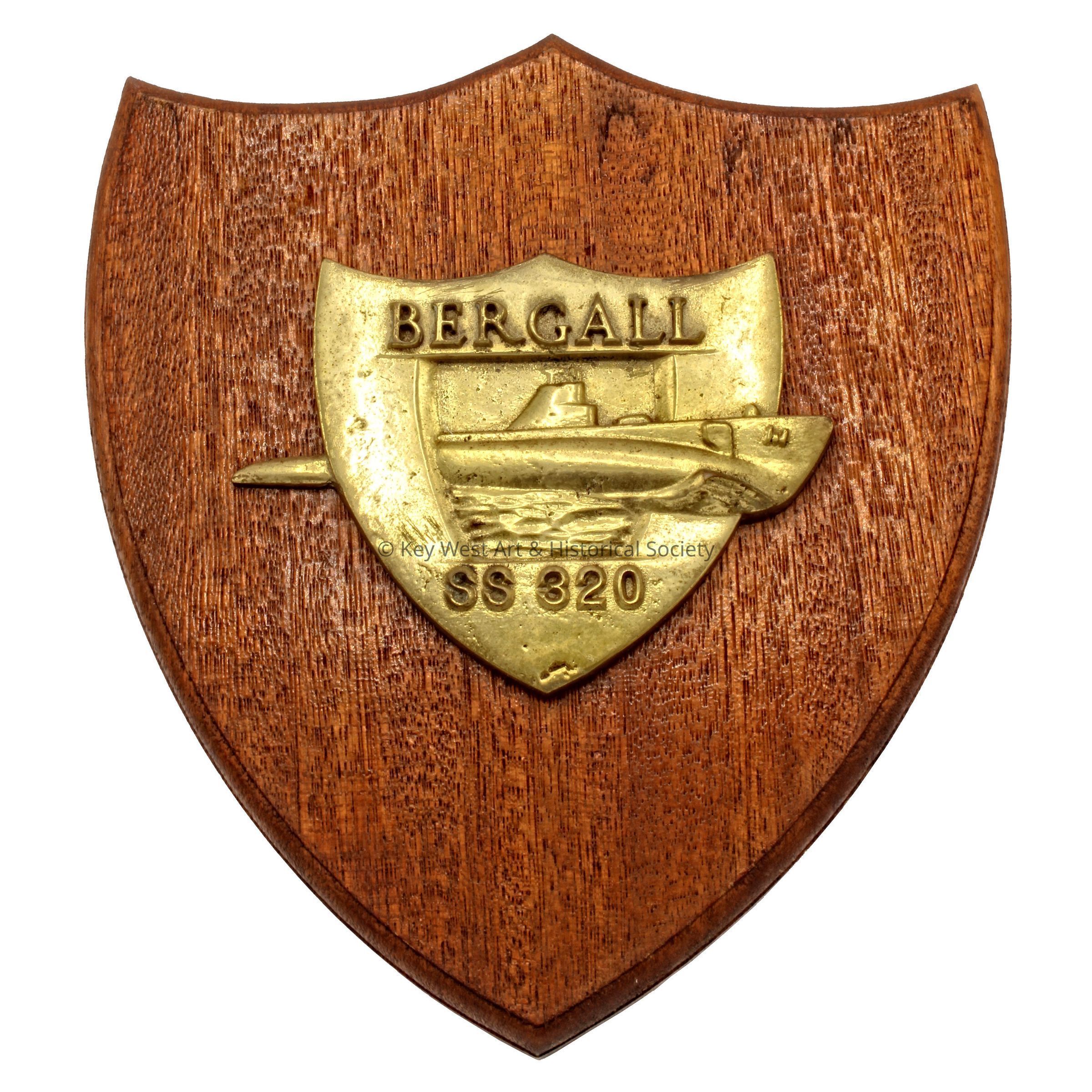 Brass on wood plaque commemorating The USS Bergall (SS-320)