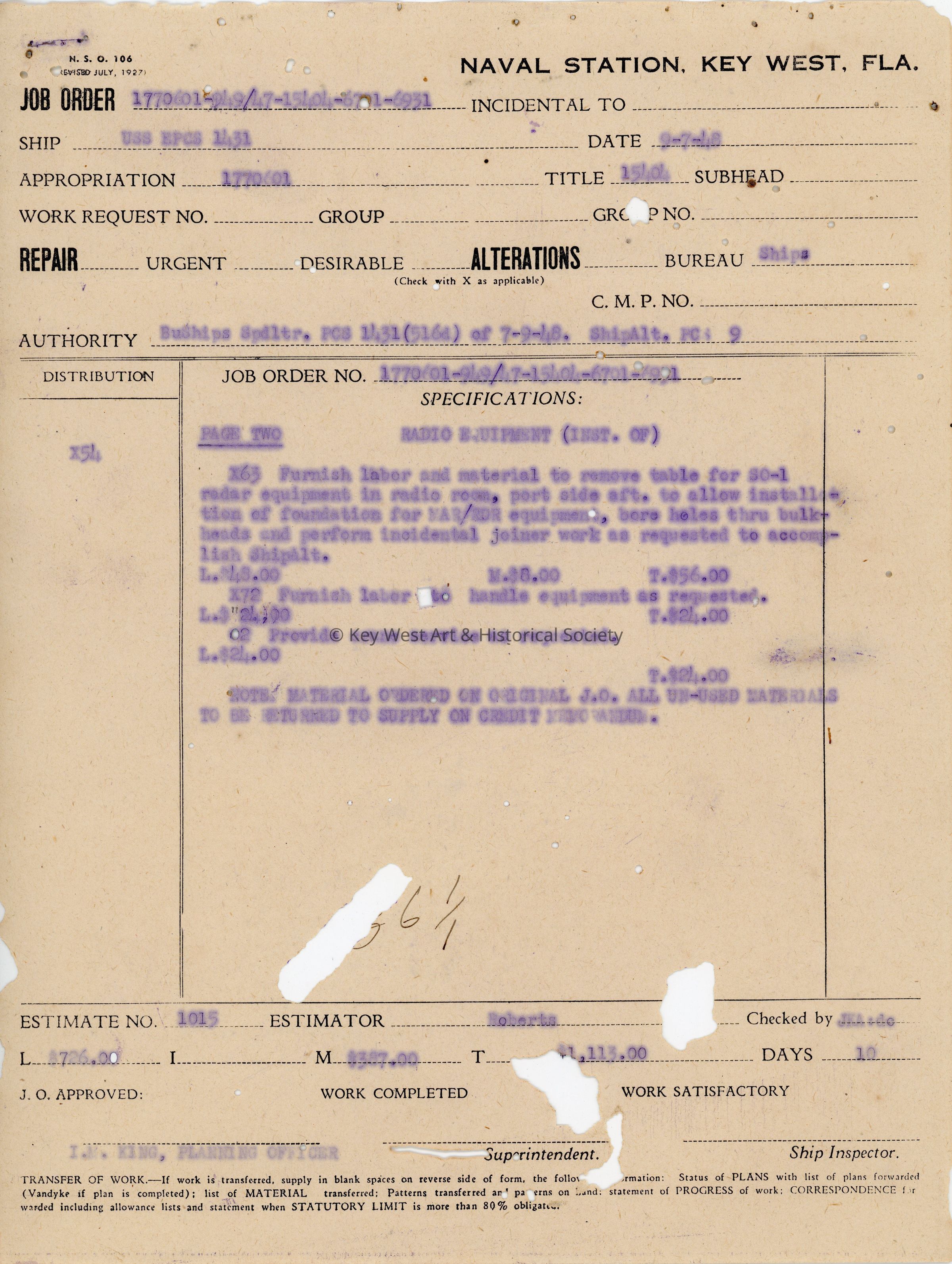 USS EPCS-1431 Job Order: © Key West Art & Historical Society