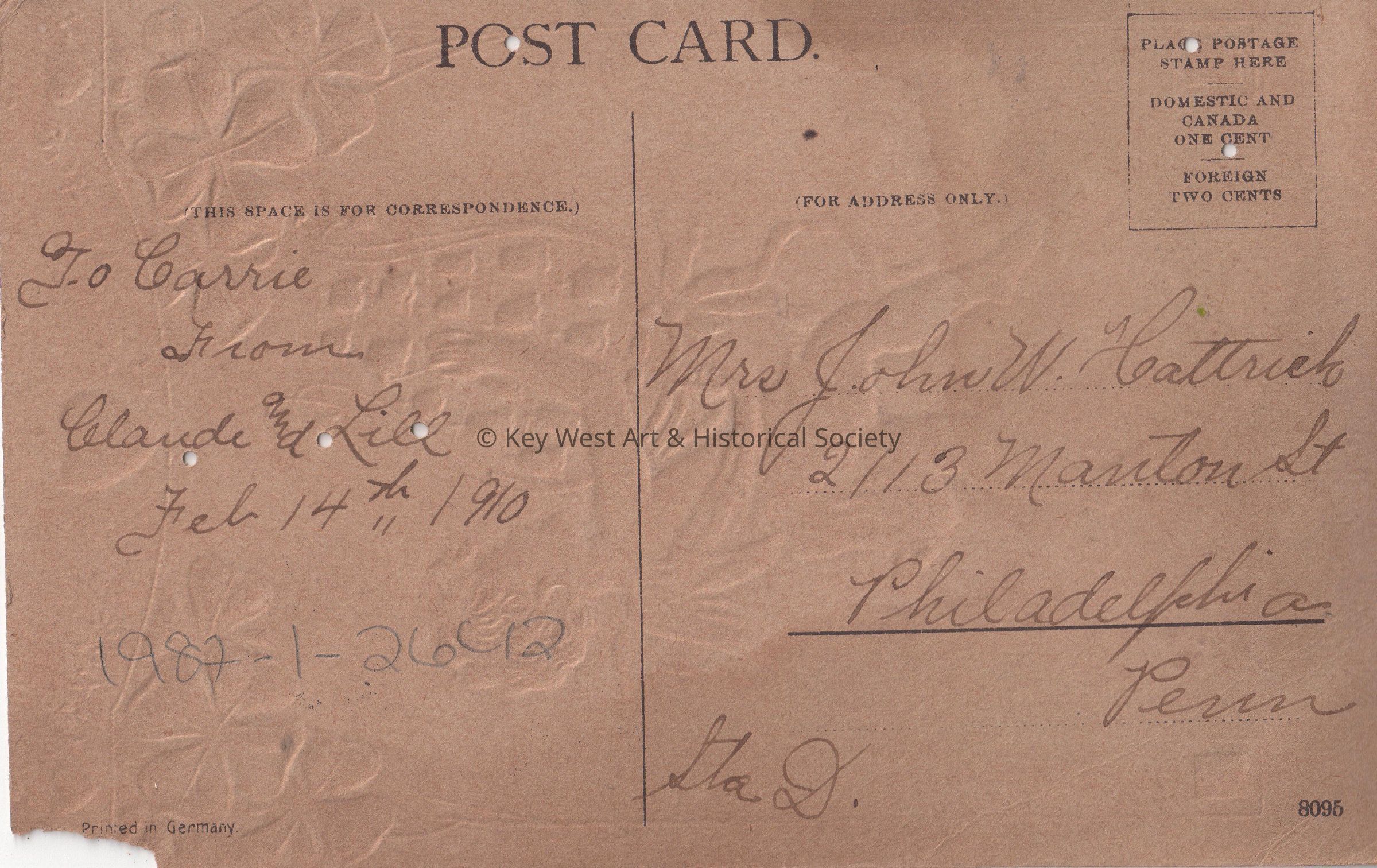 To Carrie, From Claude and Lill, February 14th, 1910.Language