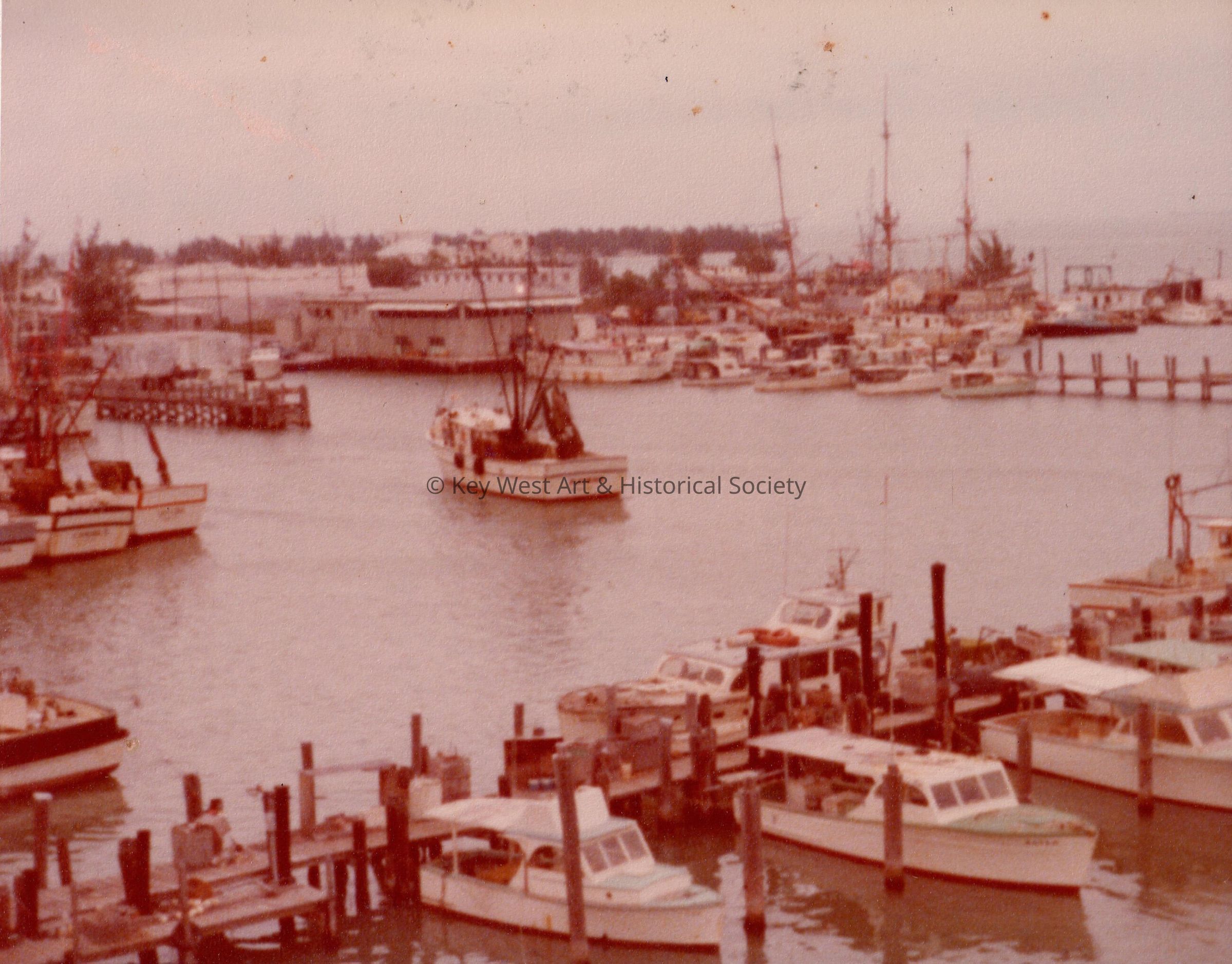 View of boats at dock in Key West Harbor, taken from Turtle Kraal Tower (50 feet high).Collection
