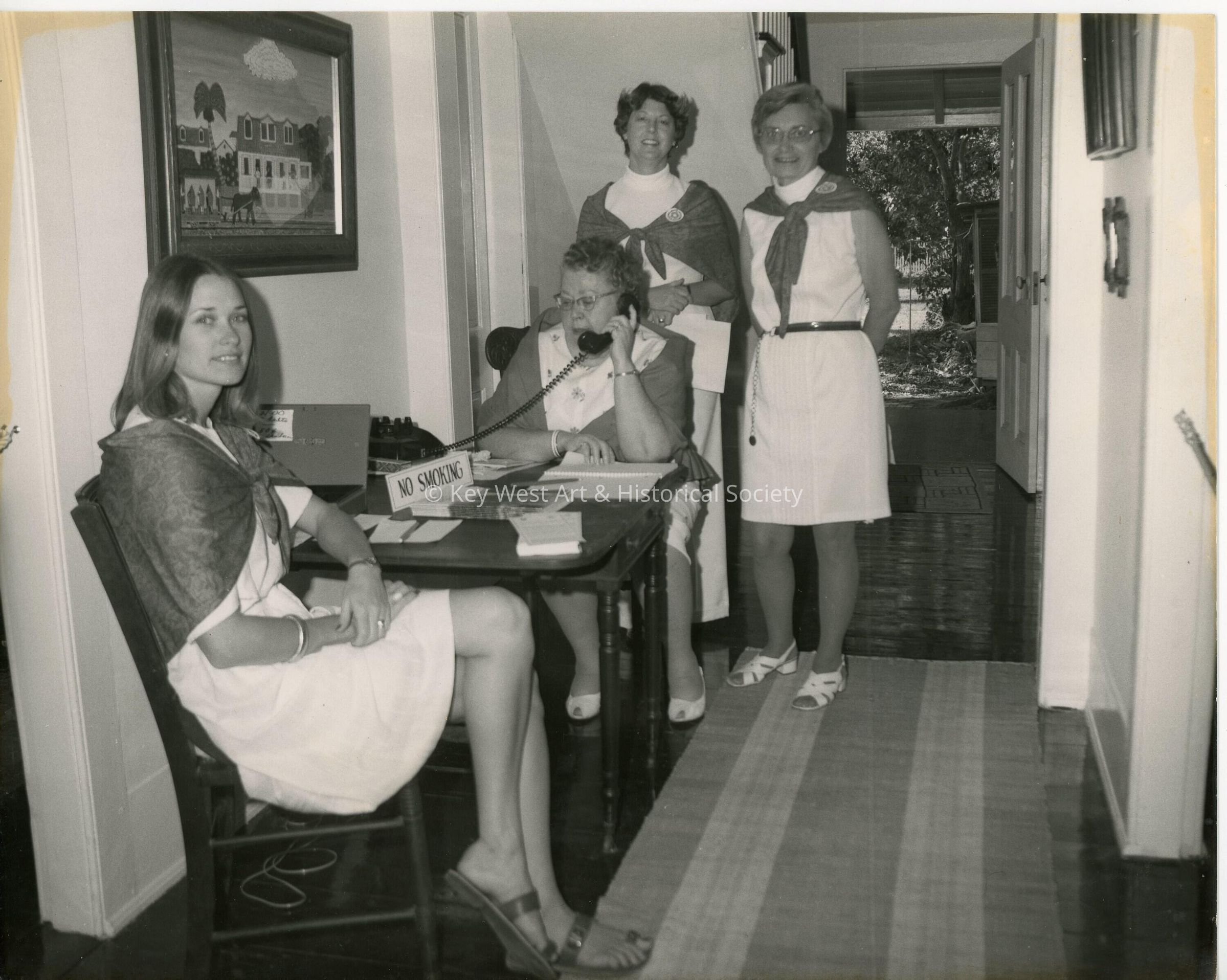Black and white photograph of volunteers at The Oldest House Museum and Gardens at 322 Duval Street.Collection
