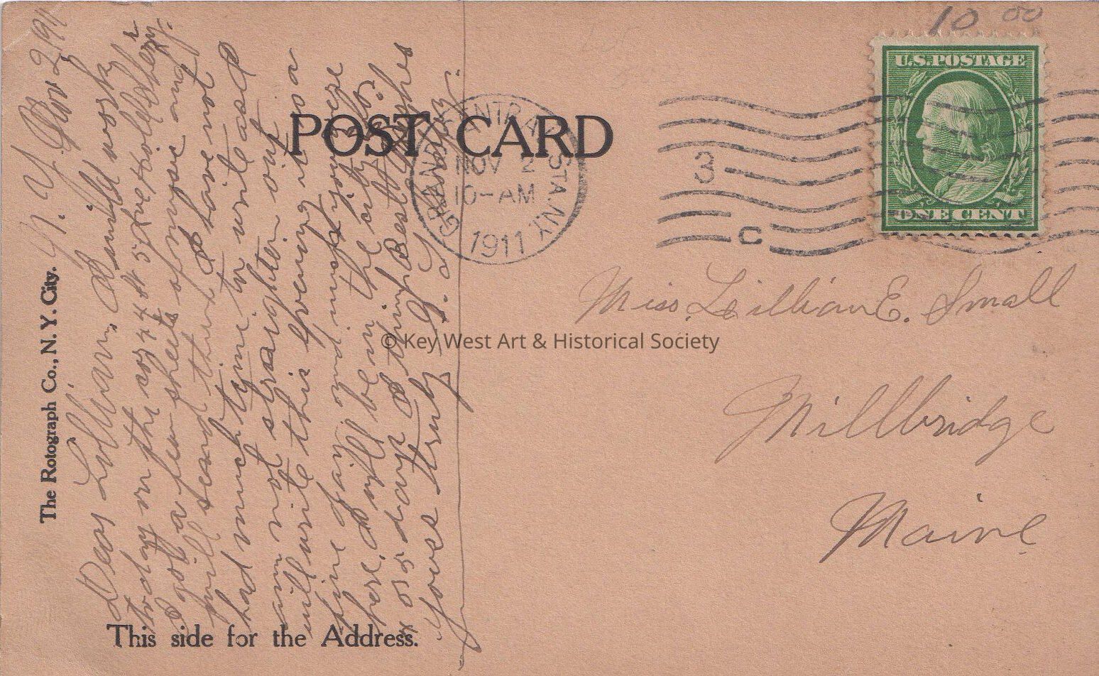 Dear Lillian, I will work today on the ___. I got a few sheets of music and will send them. I have not had much time to write as I am not straightened out. Will write this evening. It was a fine day and wish you were here. I will be in the city in a few days I think. Best wishes. Yours, truly, G. ___’.Language