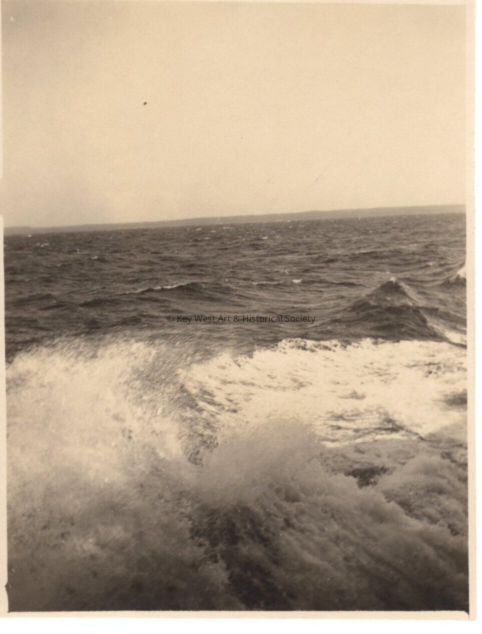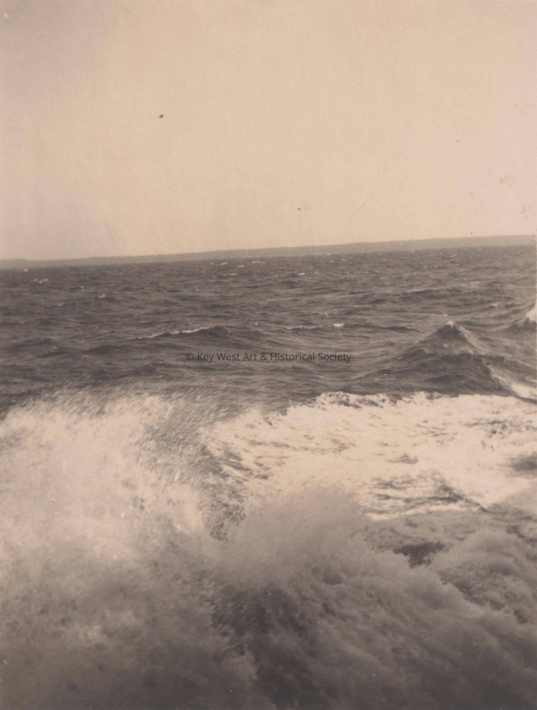 Black and white photograph of white caps and waves.