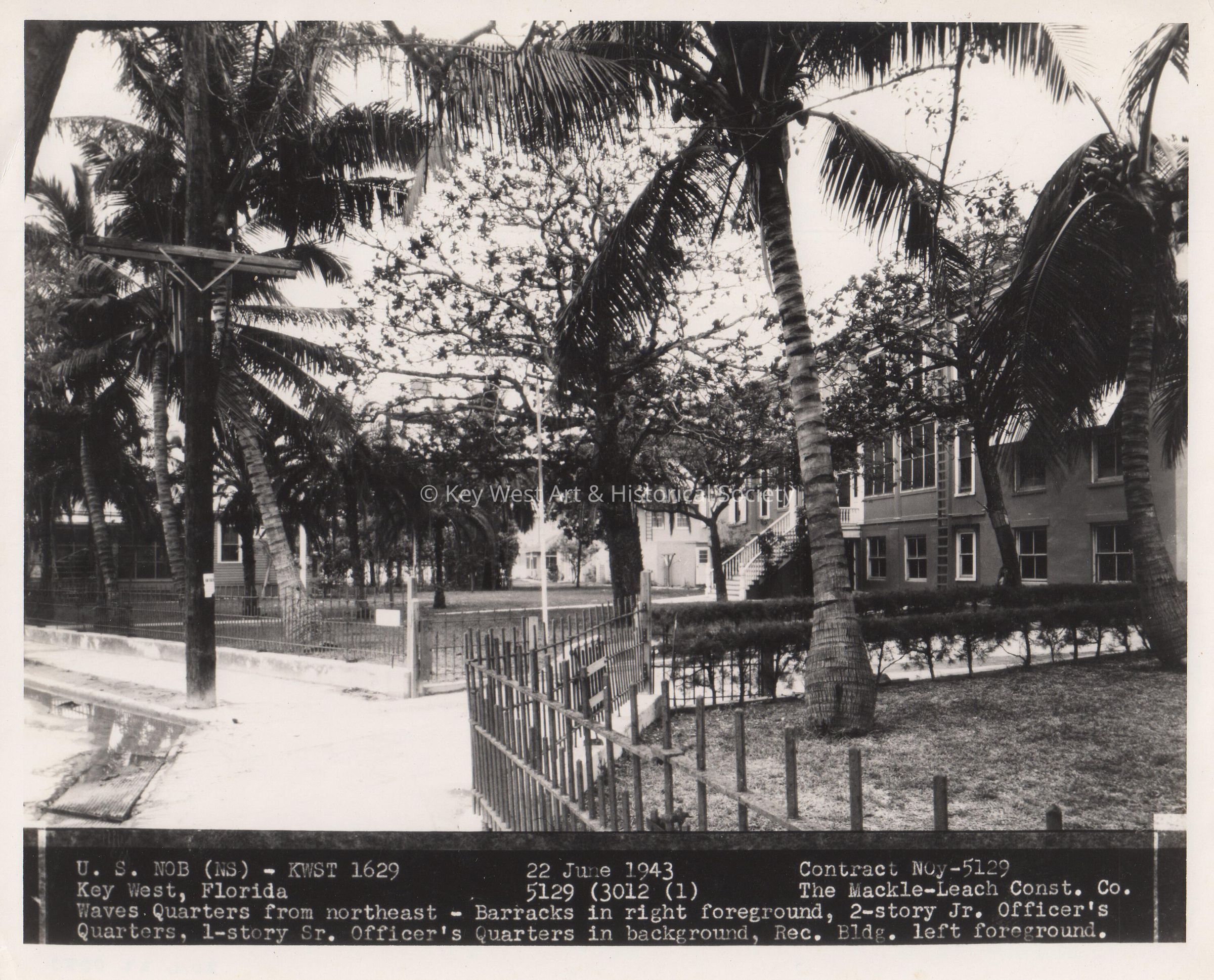 U.S. NOB (NS) - KWST 1629 Key West, Florida 22 June 1943 Waves Quarters from northeast - Barracks in right foreground, 2-story Jr. Officer's Quarters, 1-story Sr. Officer's Quarters in background, Rec. Bldg. left foreground. Contract Noy-5129 The MackleCopyright