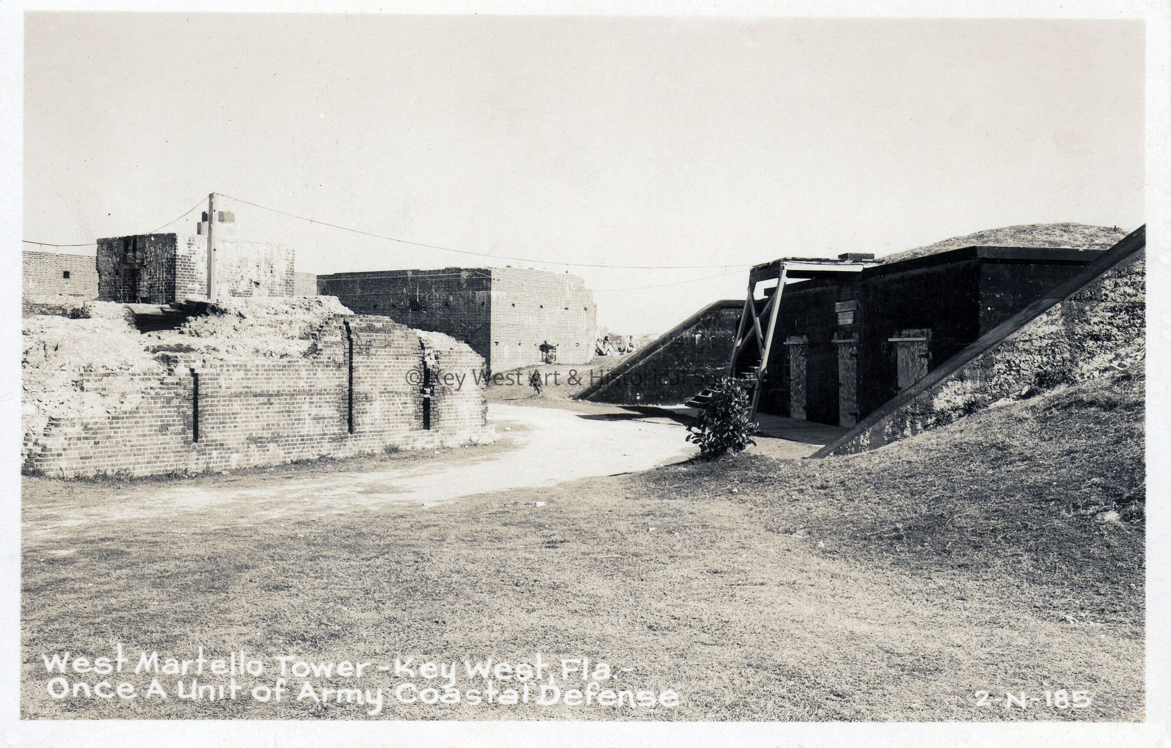 Postcard depicting the ruins of Fort West Martello. The caption reads, ‘West Martello Tower, Key West, Florida. Once a unit of Army coastal defense’.Subject Place