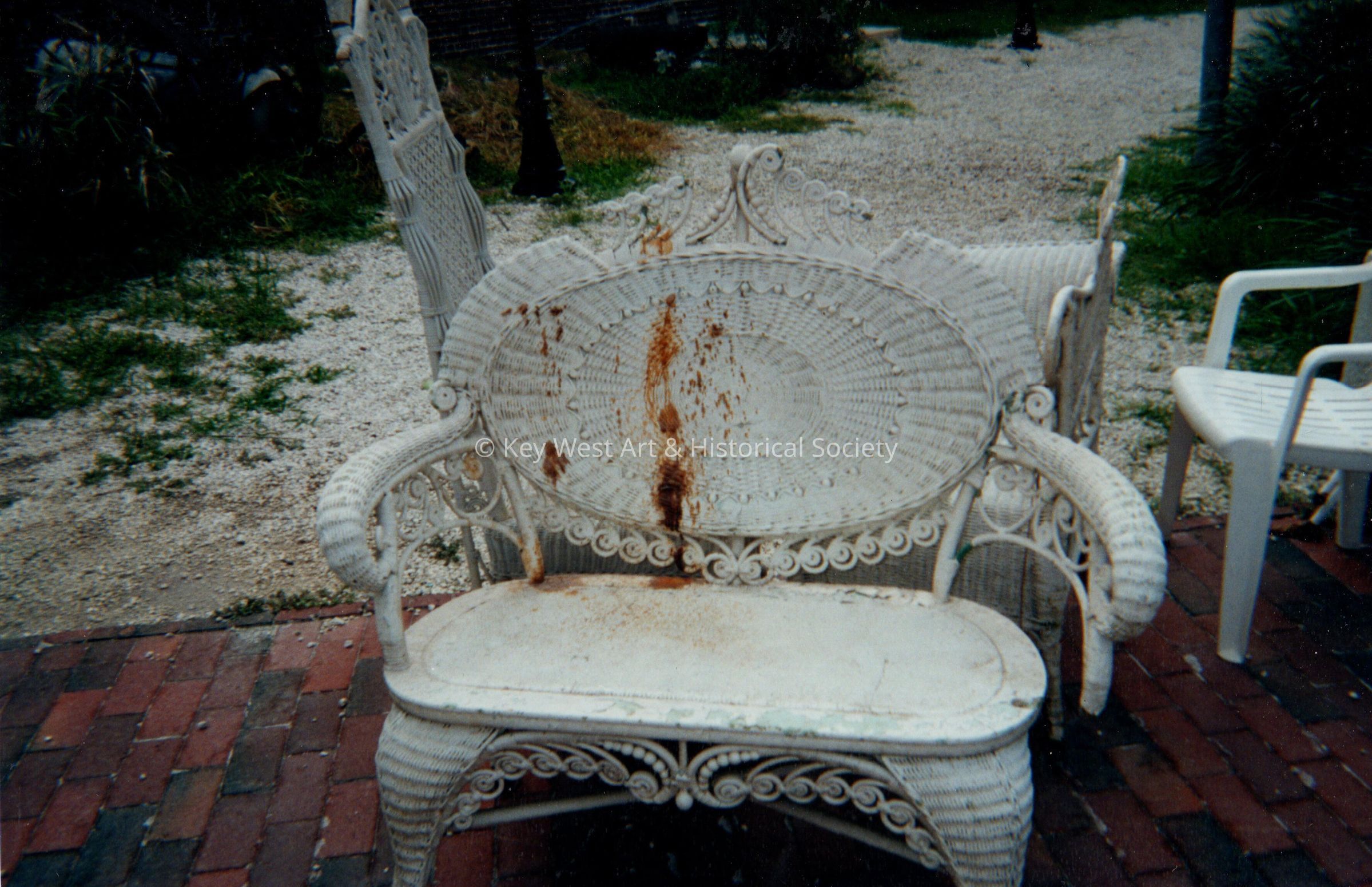 White wicker loveseat, on September 4, 2001.Collection