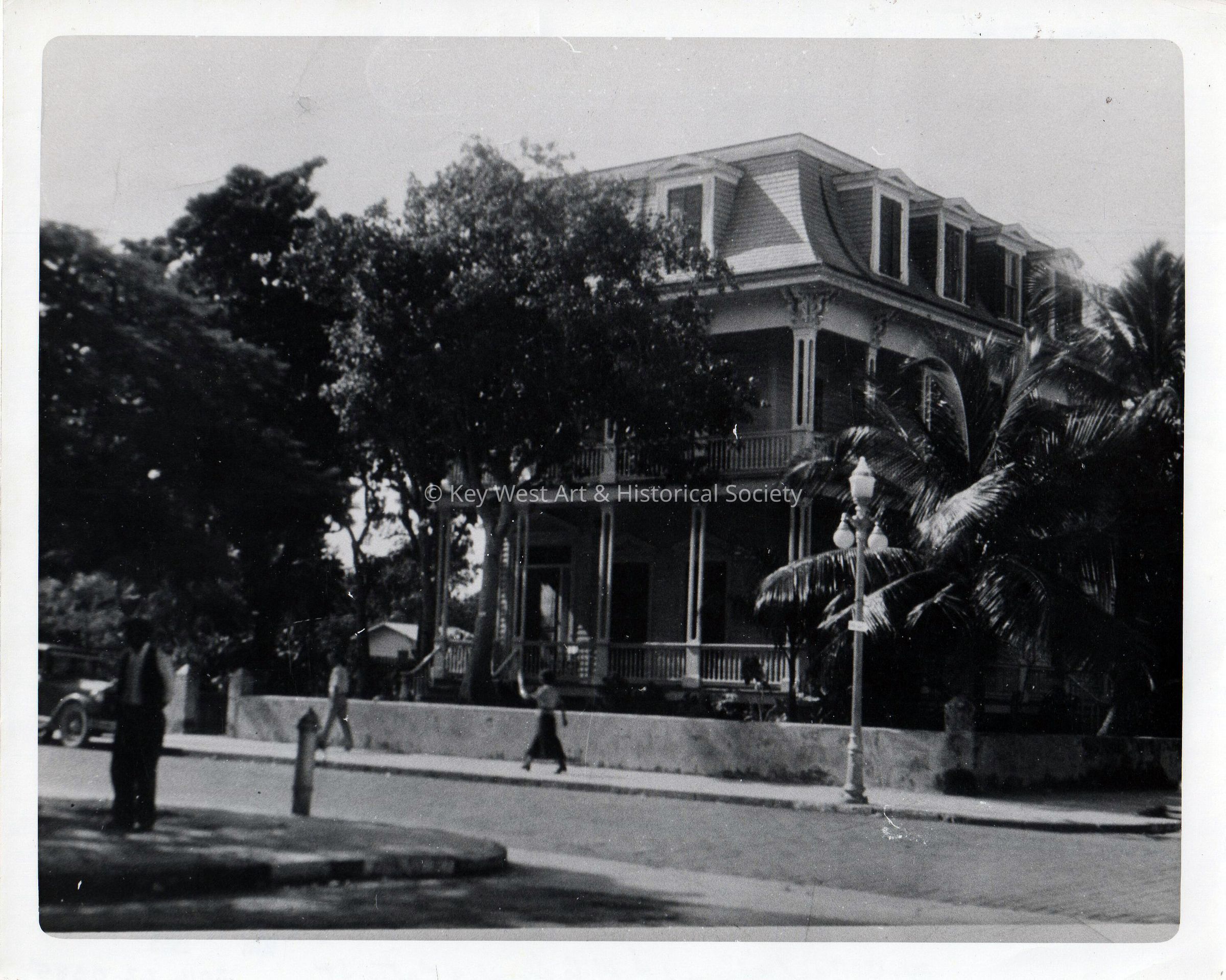 Black and white photograph of the William Cash house that formerly stood at 400 Duval Street.