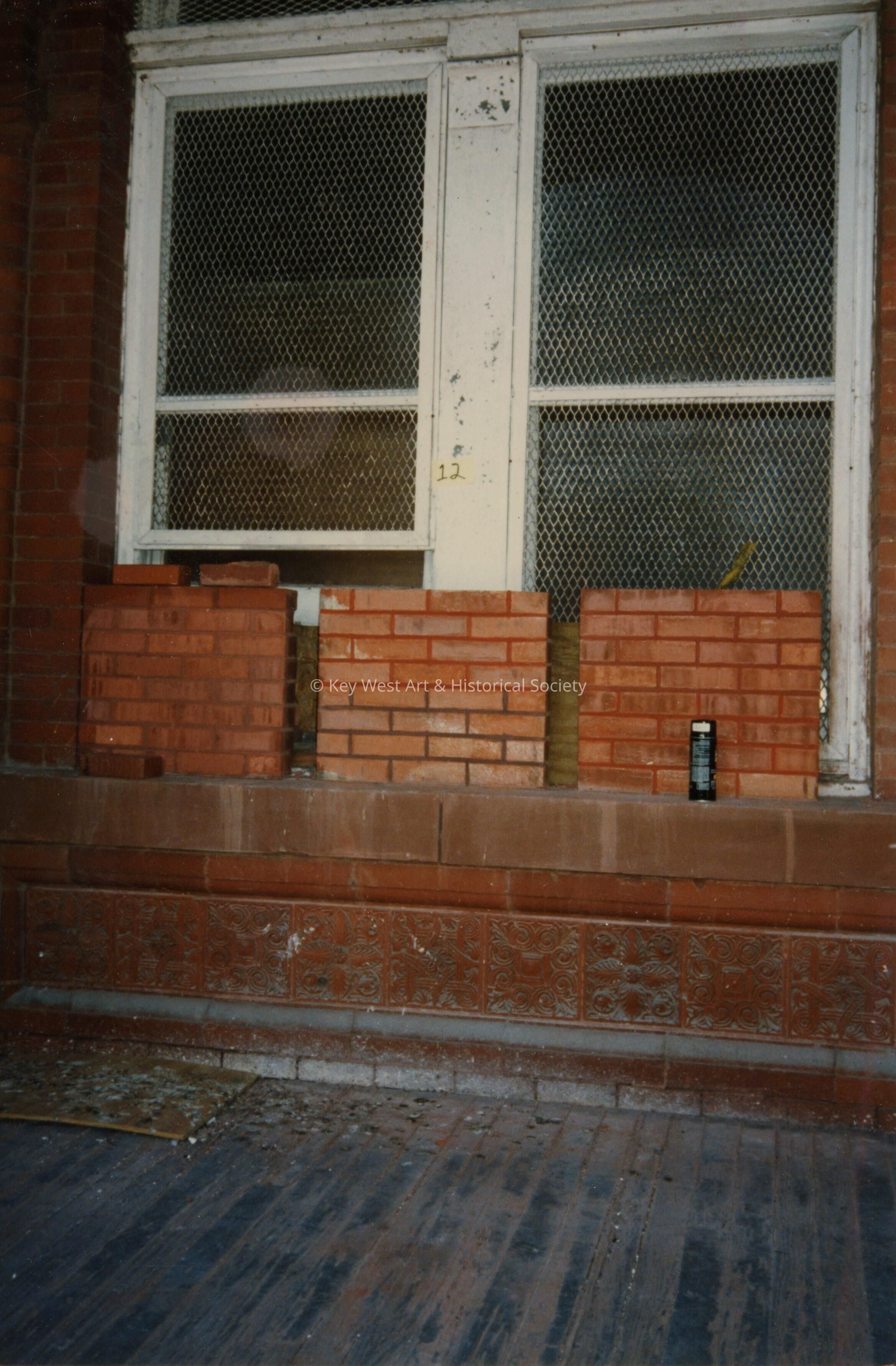 Windows labeled number 12 with bricks sitting in front of them.Entry/Object ID