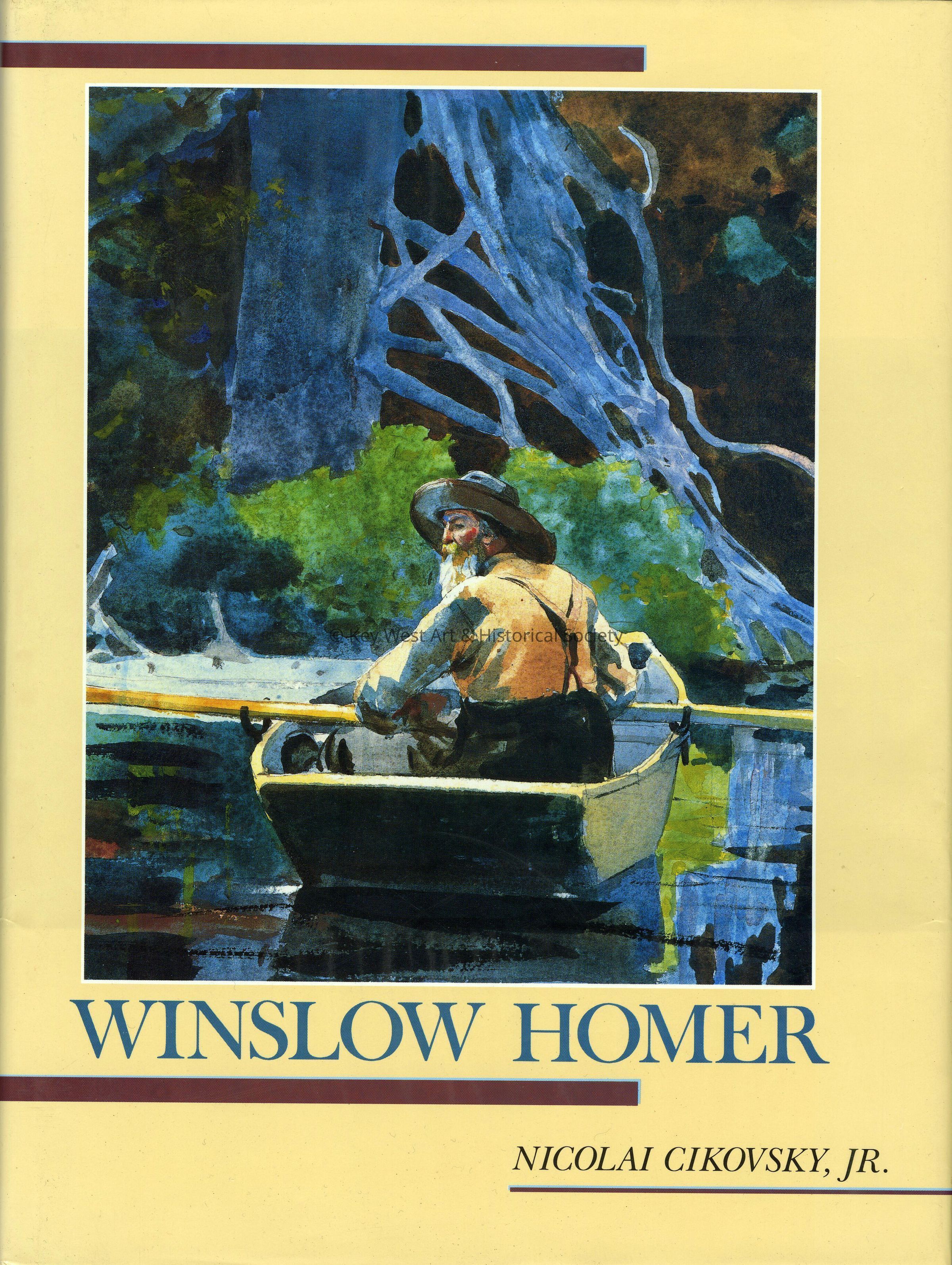 Hardcover book entitled 'Winslow Homer' written by Nicolai Cikovsky, Jr. The book discusses and reproduces more than two hundred paintings, watercolors, and drawings that span Homer's career, all of which are discussed in entries by Cikovsky and Kelly. It begins with the Civil War paintings that first brought Homer's remarkable artistic mentality to public attention, in which he movingly expressed the profound implications the war held for the nation. Homer's interest in national themes is further explored in his works of the later 1860s and 1870s, which embraced a wide spectrum of American life. His shift toward more idealized and heroic imagery and his withdrawal to a solitary life at Prout's Neck, Maine, in the 1880s are discussed as turning points leading to the great achievements of his last two decades. After considering his beautiful late watercolors of the Tropics and the Adirondacks, and his monumental Prout's Neck seascapes, the book concludes with a reassessment of the tragic, almost visionary paintings of his last years.Collection