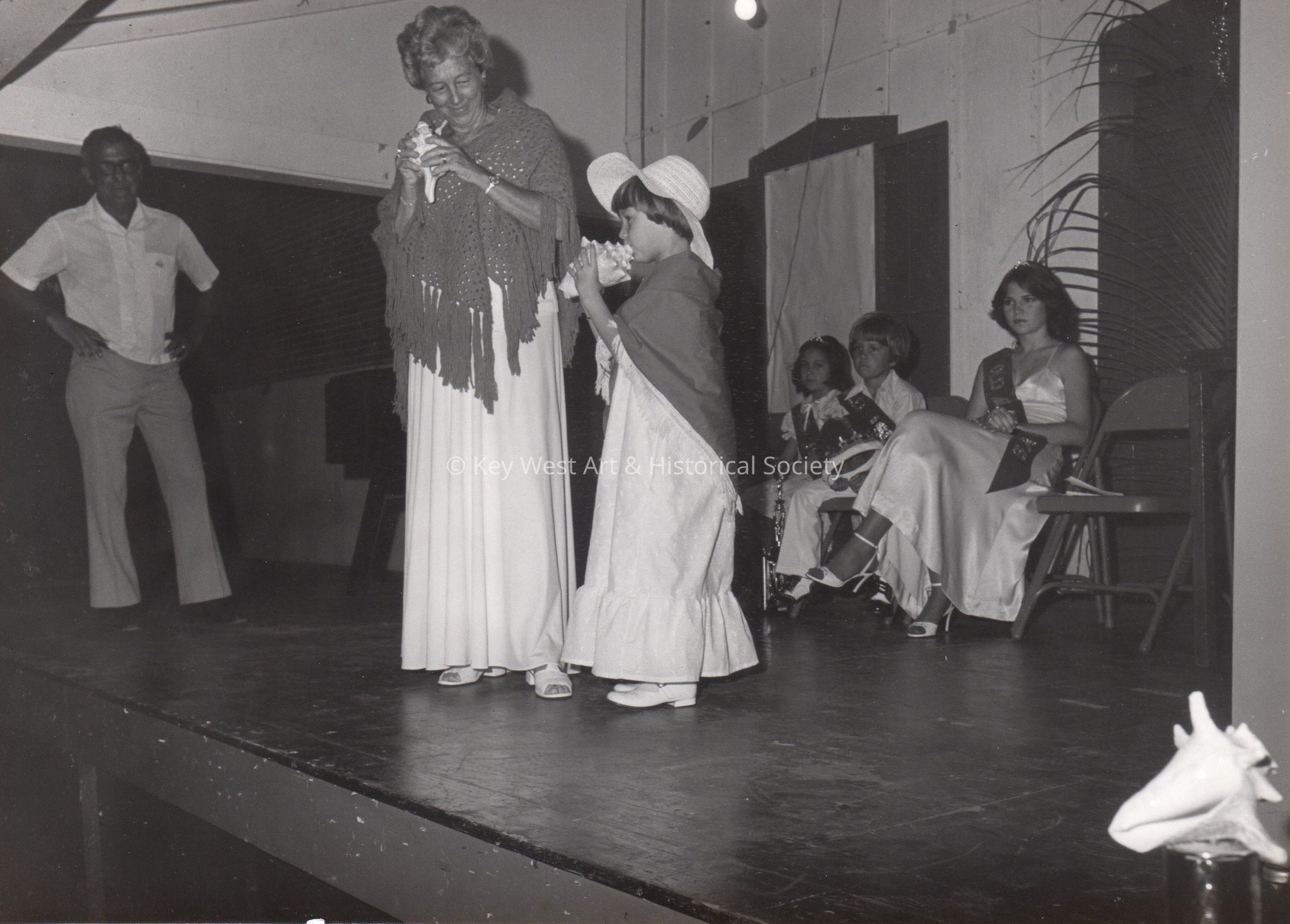 Woman and girl with conch shells