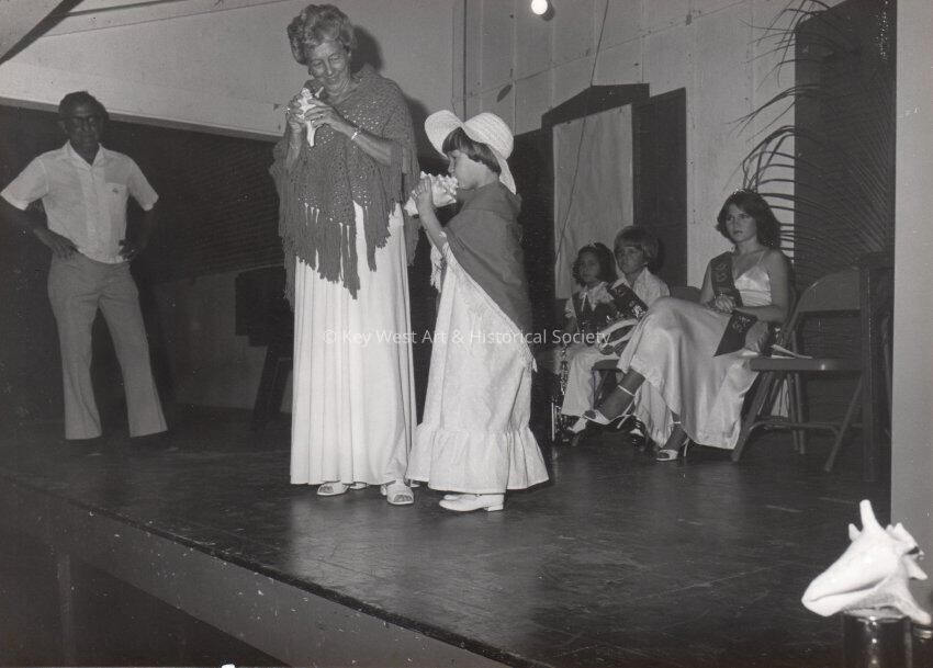 Woman and girl with conch shells.