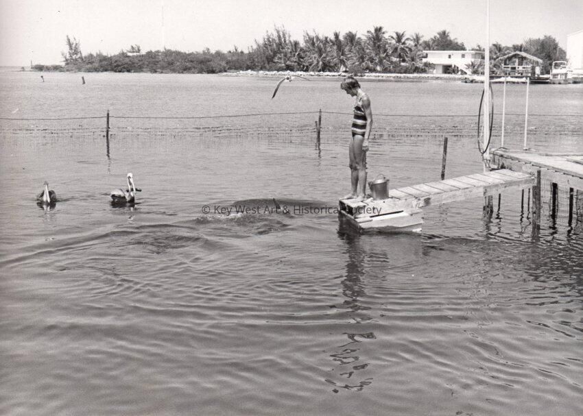 Woman with pelicans.