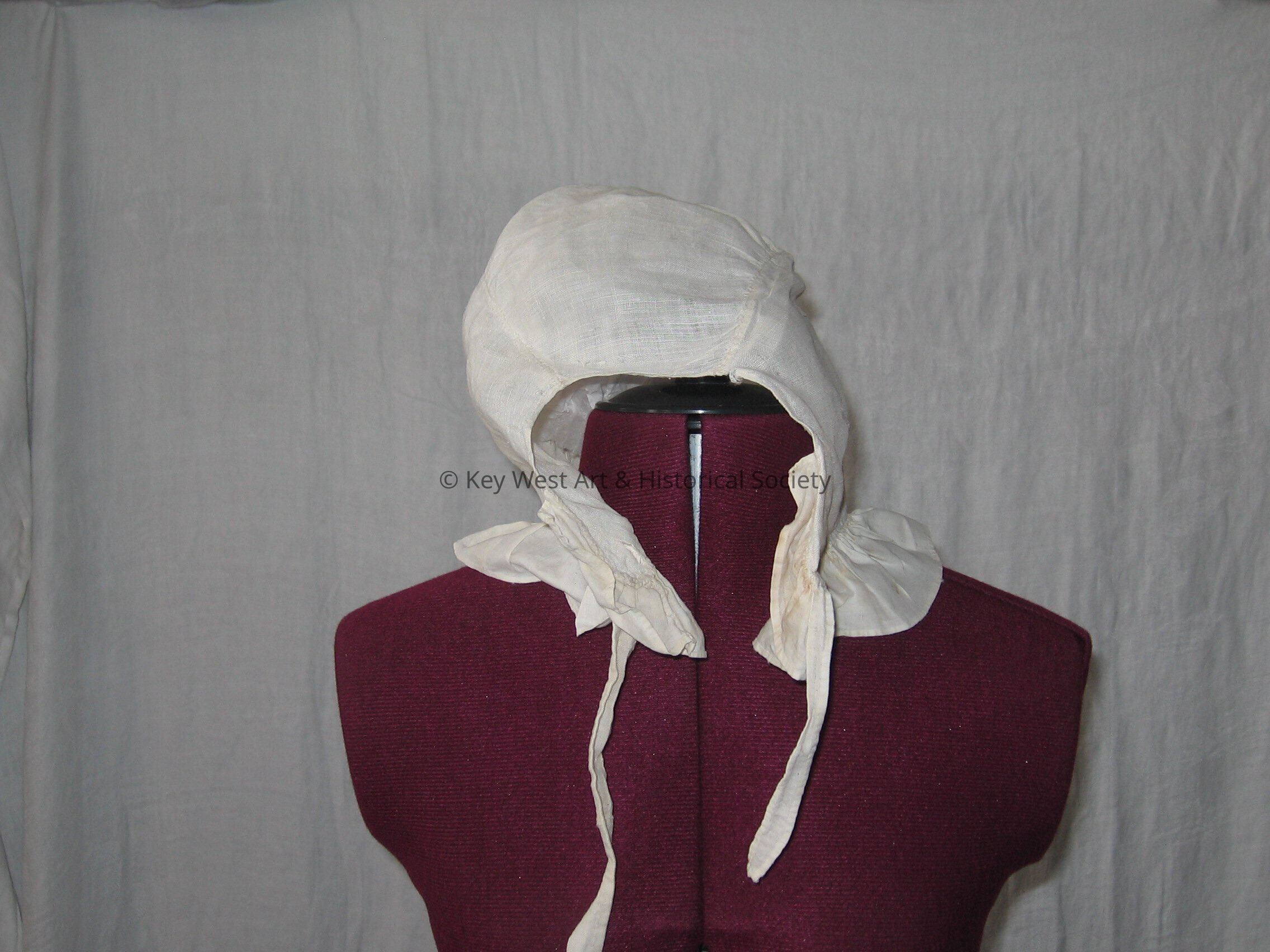 White cotton nightcap with string closure.