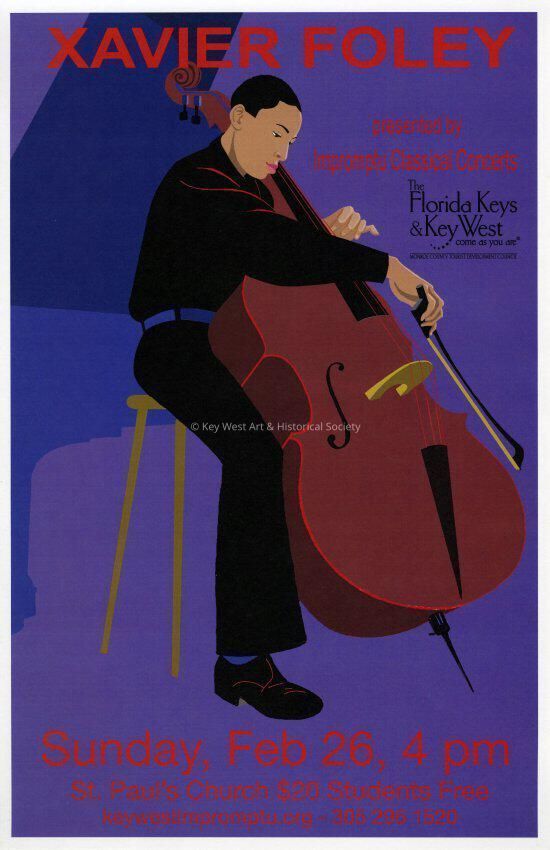 An advertising poster for Impromptu Classical Concerts featuring Xavier Foley. The concert took place on February 26, 2017 at St. Pauls Church in Key West.Collection