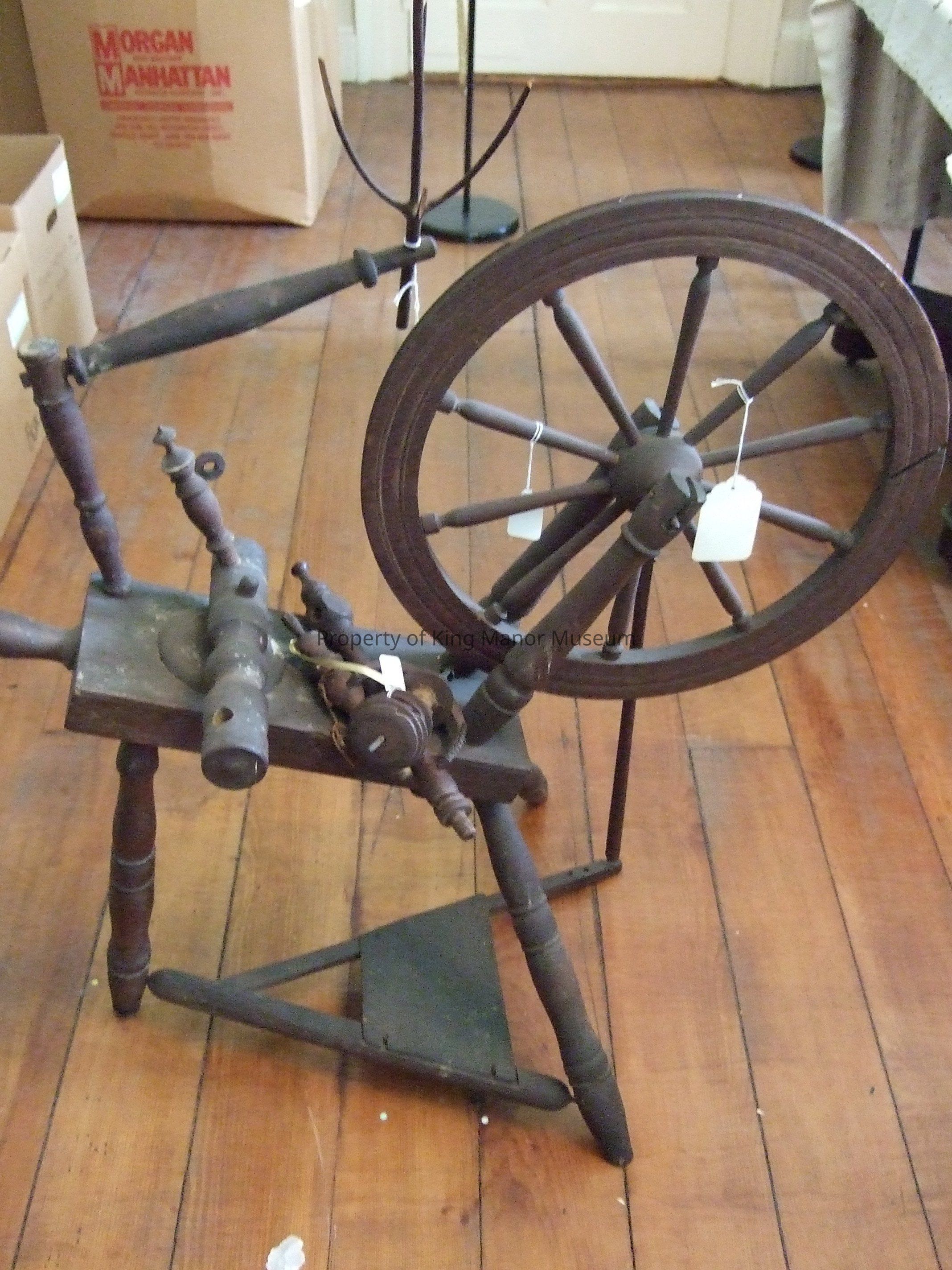 Wood spinning wheel; vertical wheel. Packed in Morgan Manhattan box.