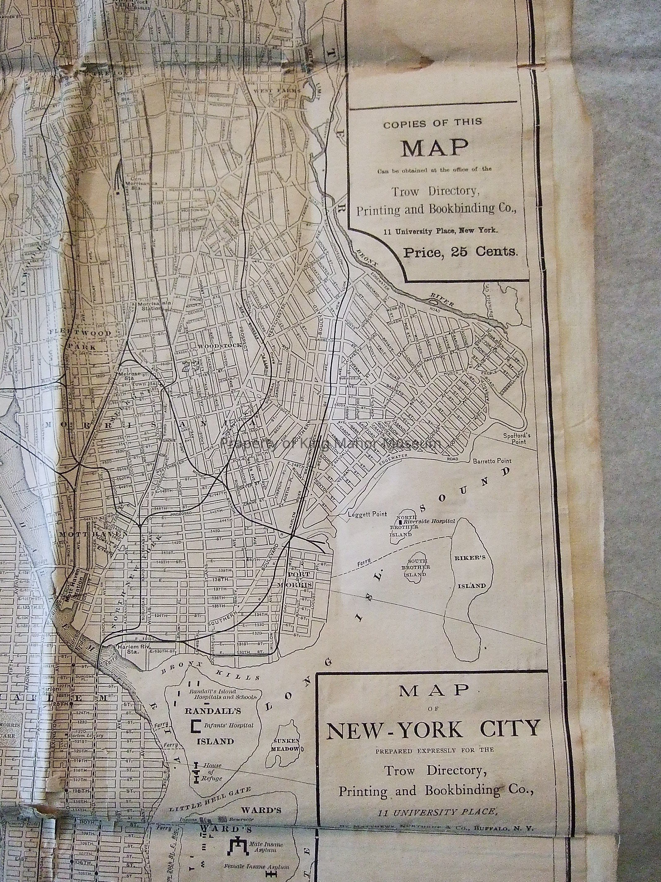 Trow Directory Map of New York City 1884, attached to linen backing. KMA Label "5 Cx"