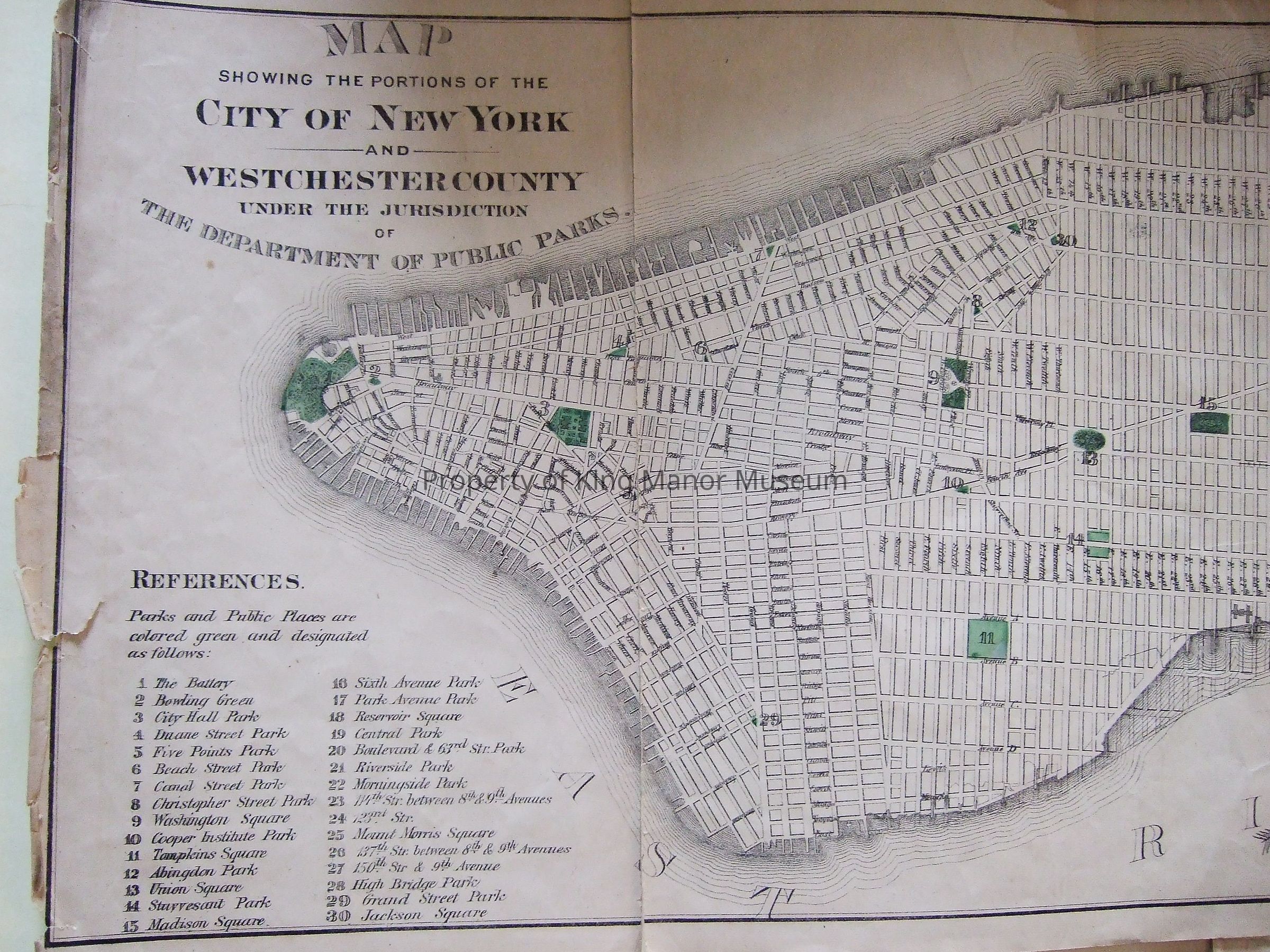 Map showing the portion of the City of New York and Westchester County under the Jurisdiction of the Department of Parks. 4 separate sheets.Collection