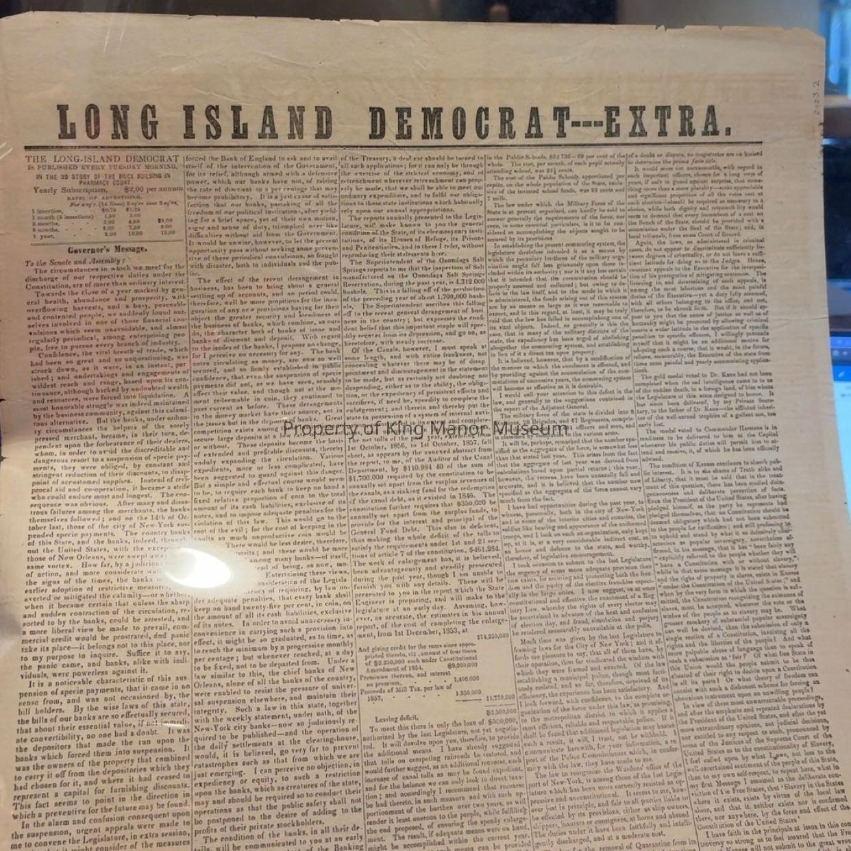 Long Island Democrat broadside with message from John. A KingCollection