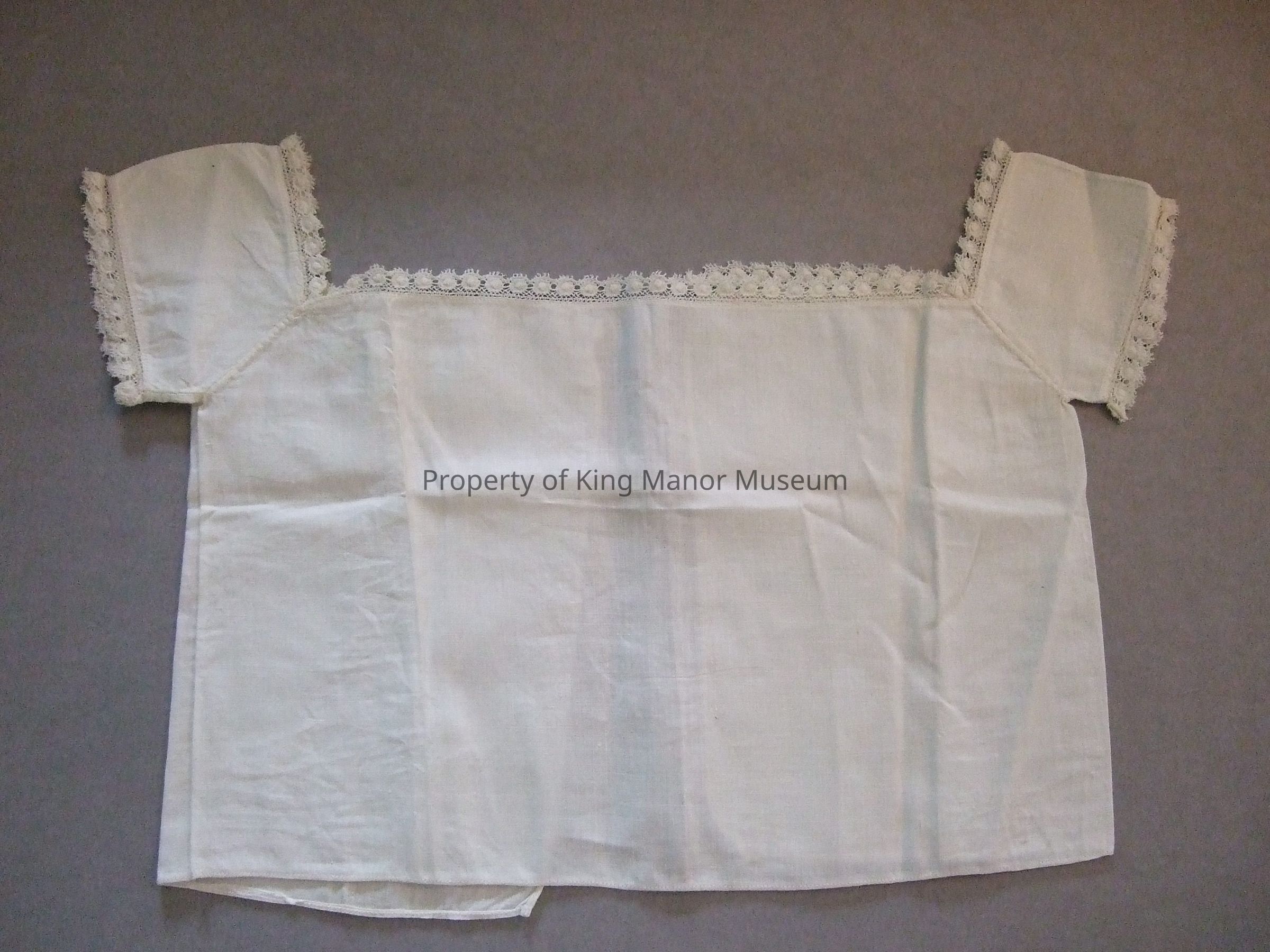 Cotton chemise with cap sleeve, square neck, open back (no fastenings), hemmend edges and lace border along the collar and sleeves.Collection