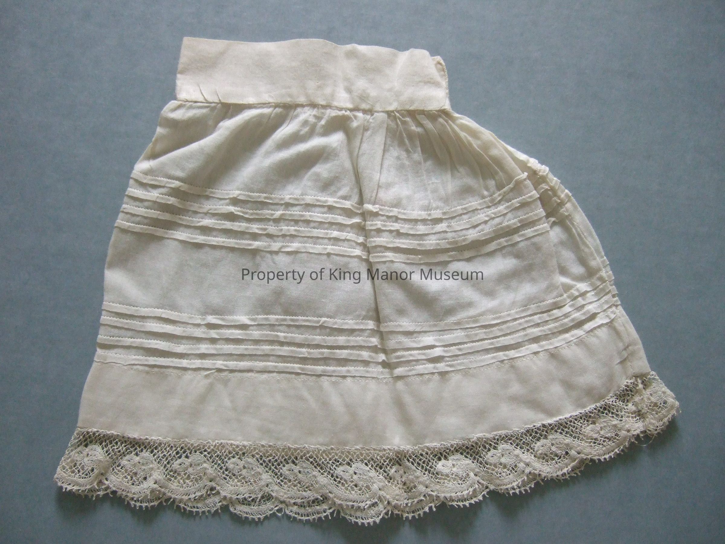 Cotton doll's slip with lade edging and two bands of 4 folds.
