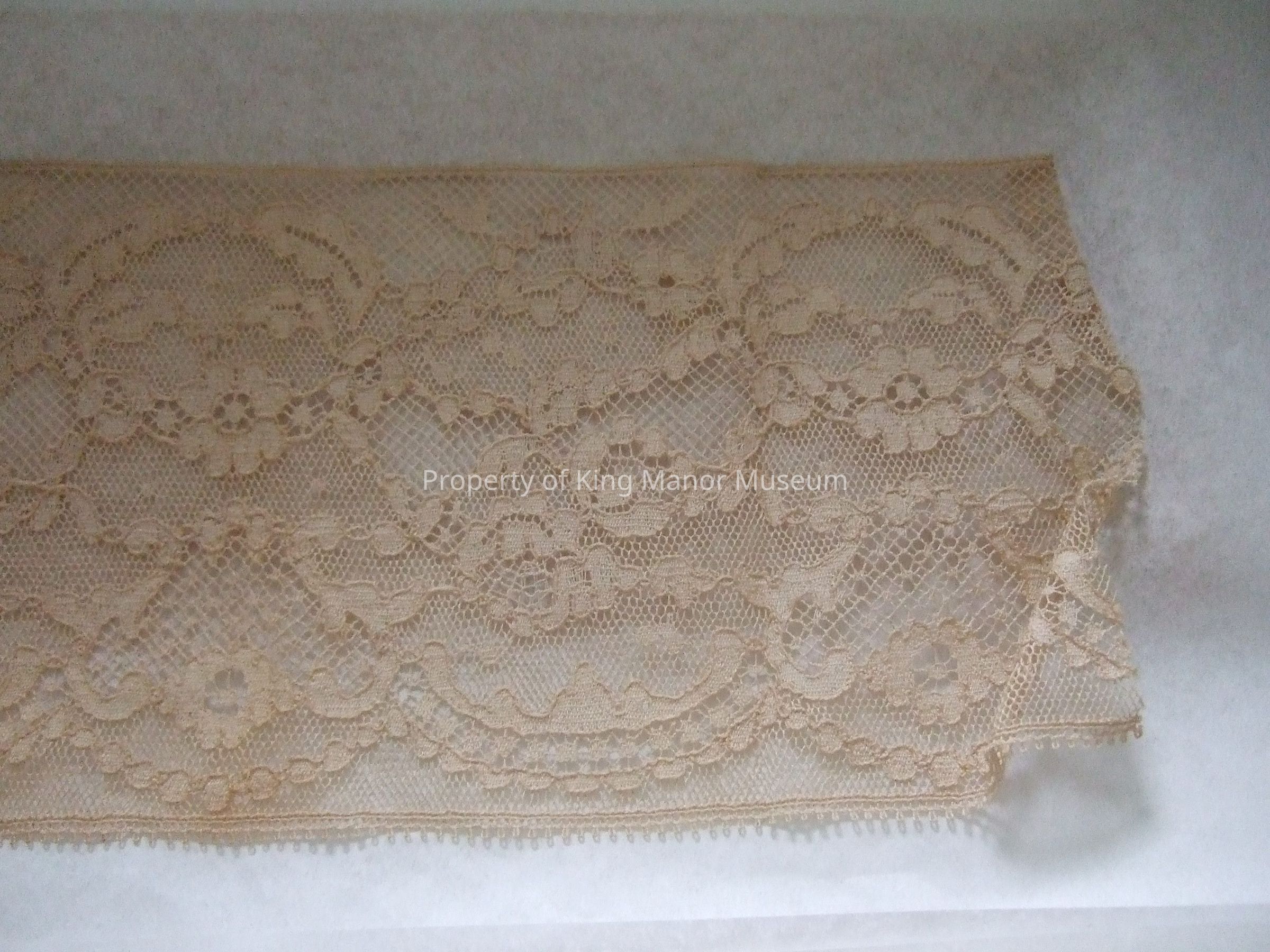 Machine made beige colored lace trim. KMA sticker "6IB7"