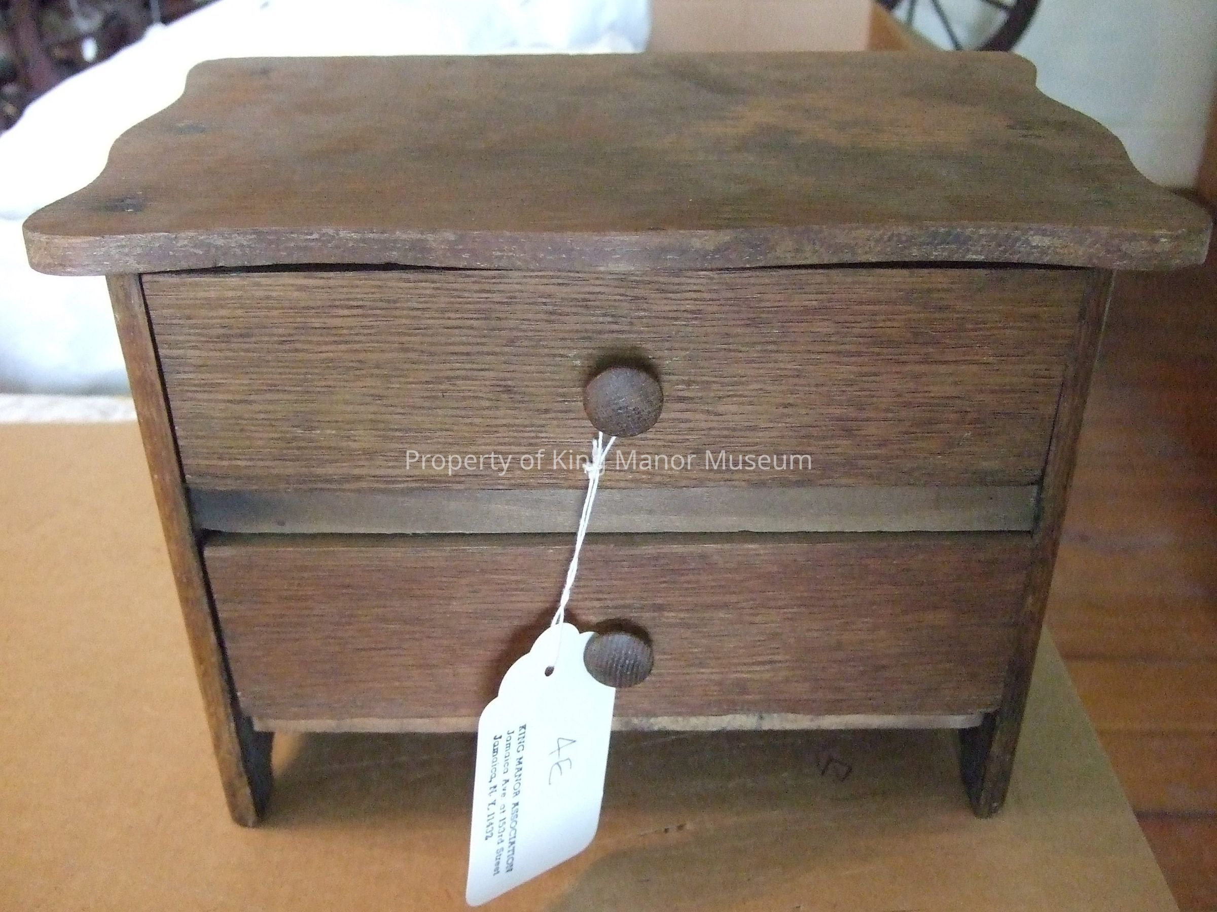 Small oak chest of dfrawers, the shaped oblong top over a conforming chest having two drawers fitted with wood knob pullsCollection