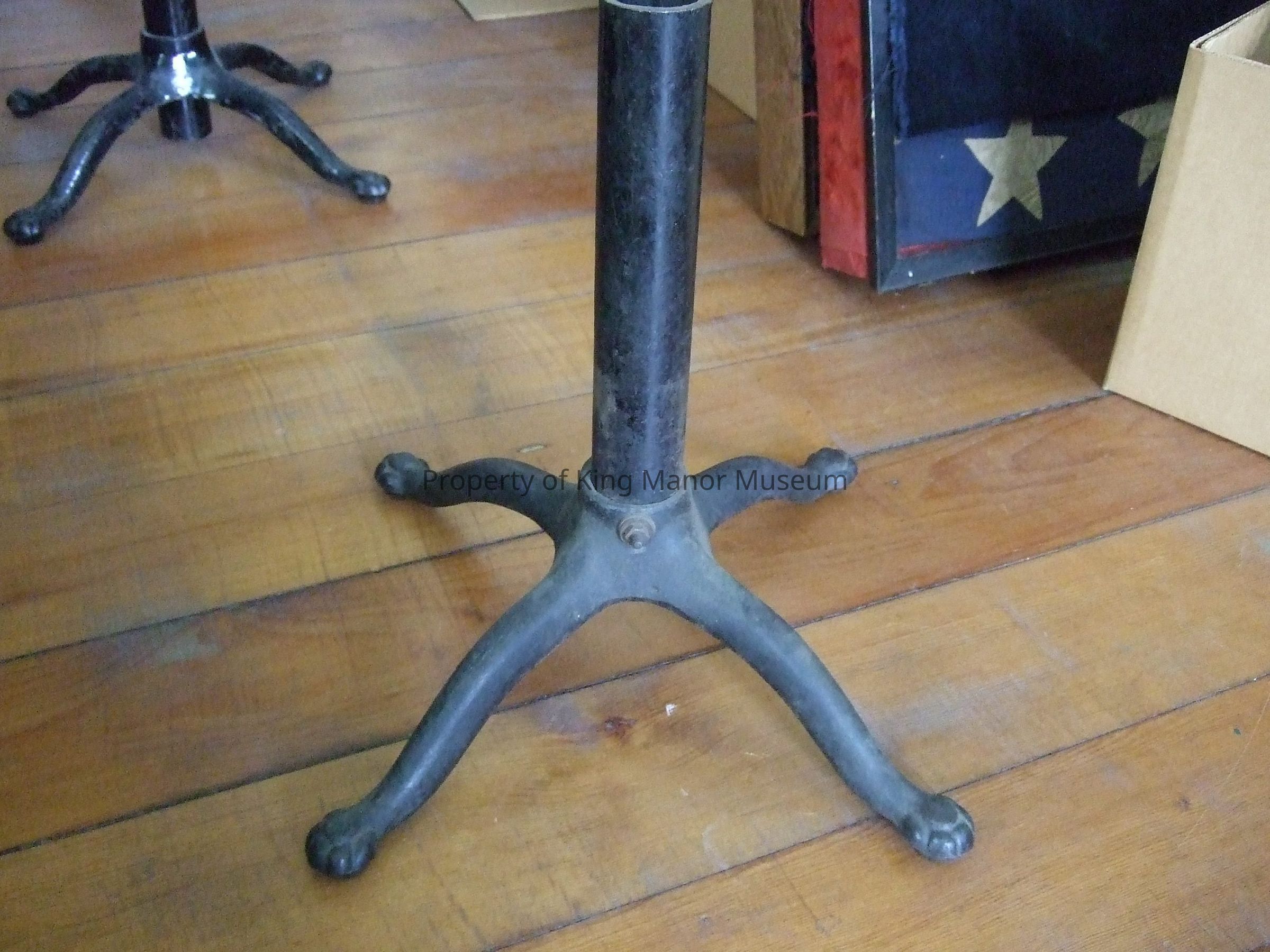 Cast iron dress form or mannequin base having short pole on X-form base